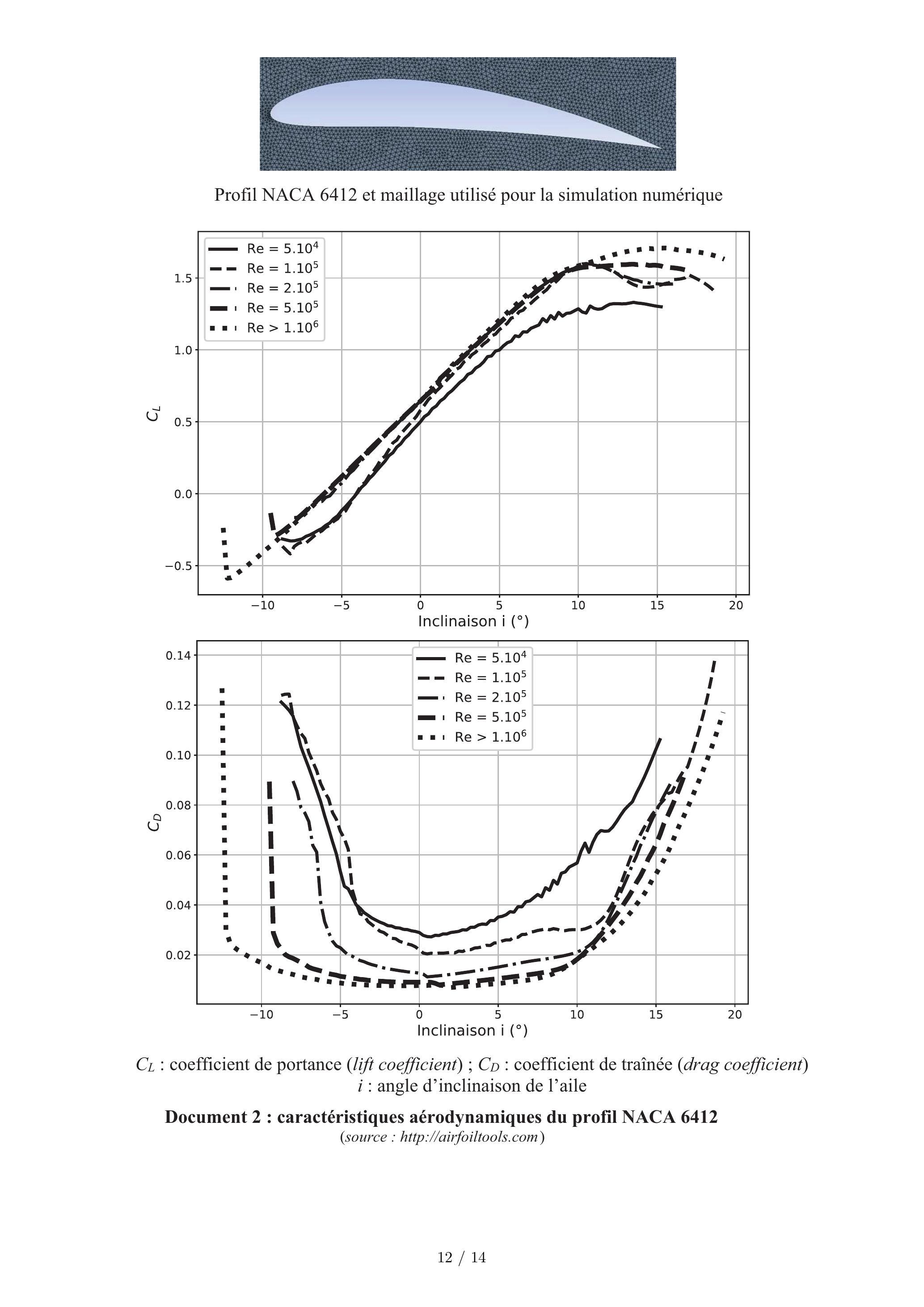 Document 2 : caractéristiques aérodynamiques du profil NACA 6412