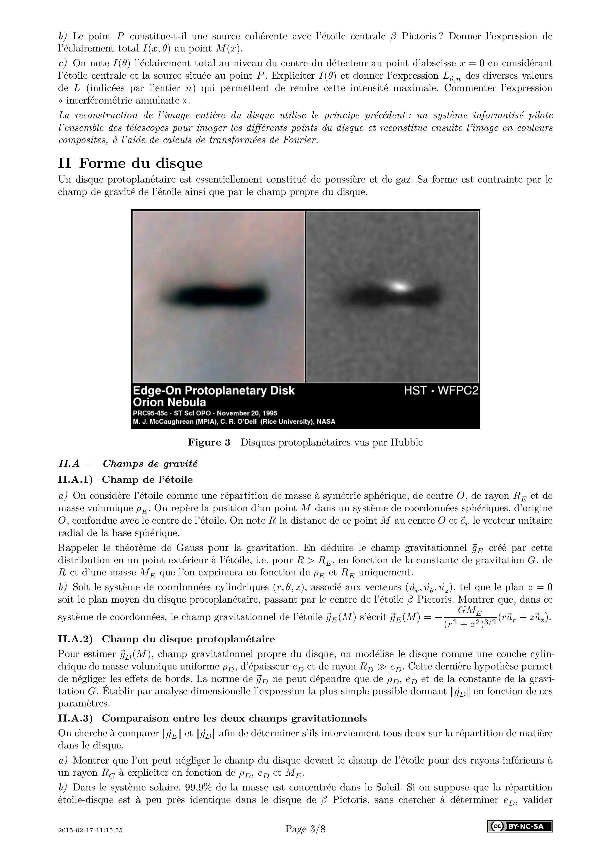 Un disque protoplanétaire est essentiellement constitué de poussière et de gaz. Sa forme est contrainte par le champ de gravité de l'étoile ainsi que par le champ propre du disque.