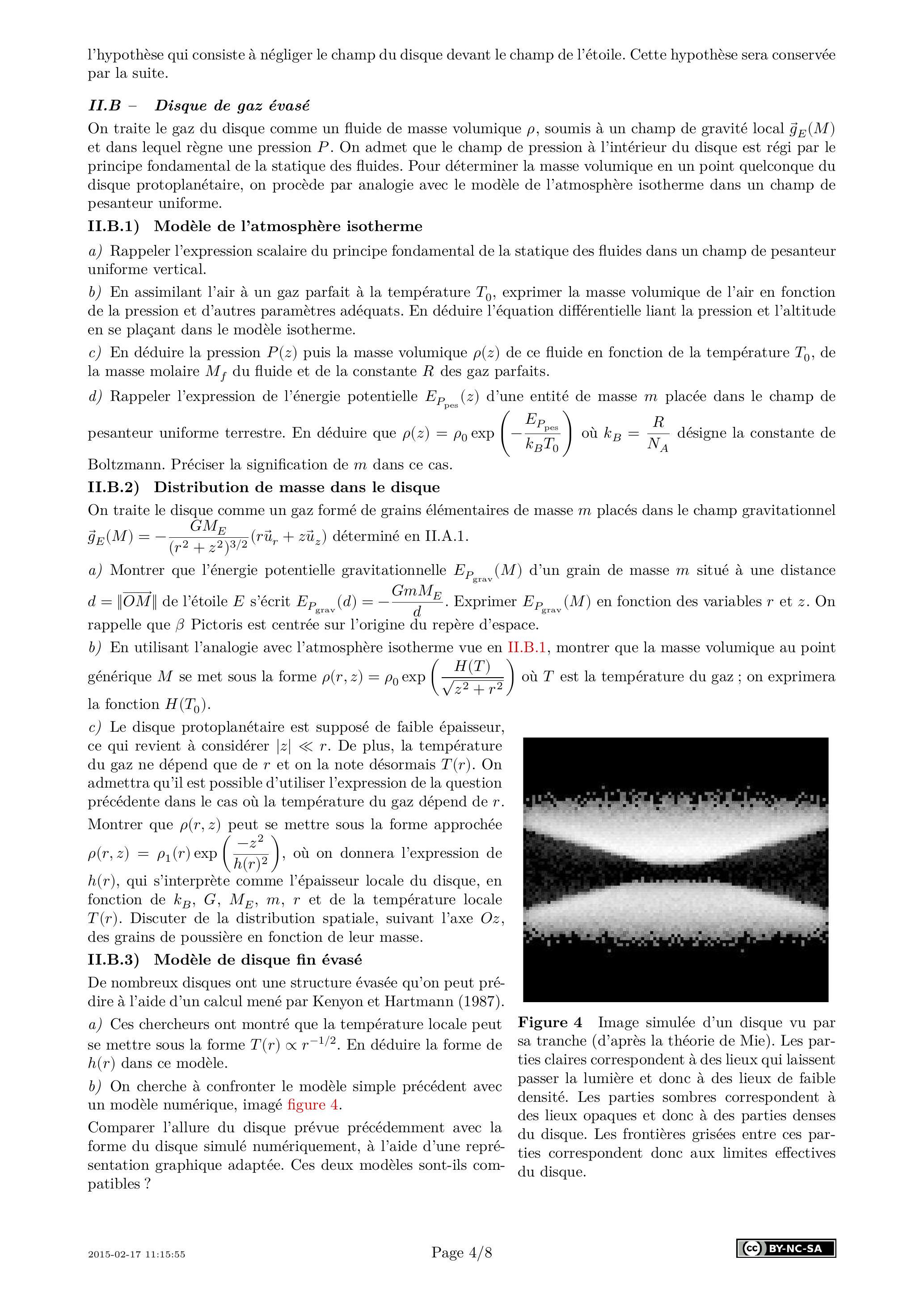 On traite le disque comme un gaz formé de grains élémentaires de masse placés dans le champ gravitationnel déterminé en II.A.1.