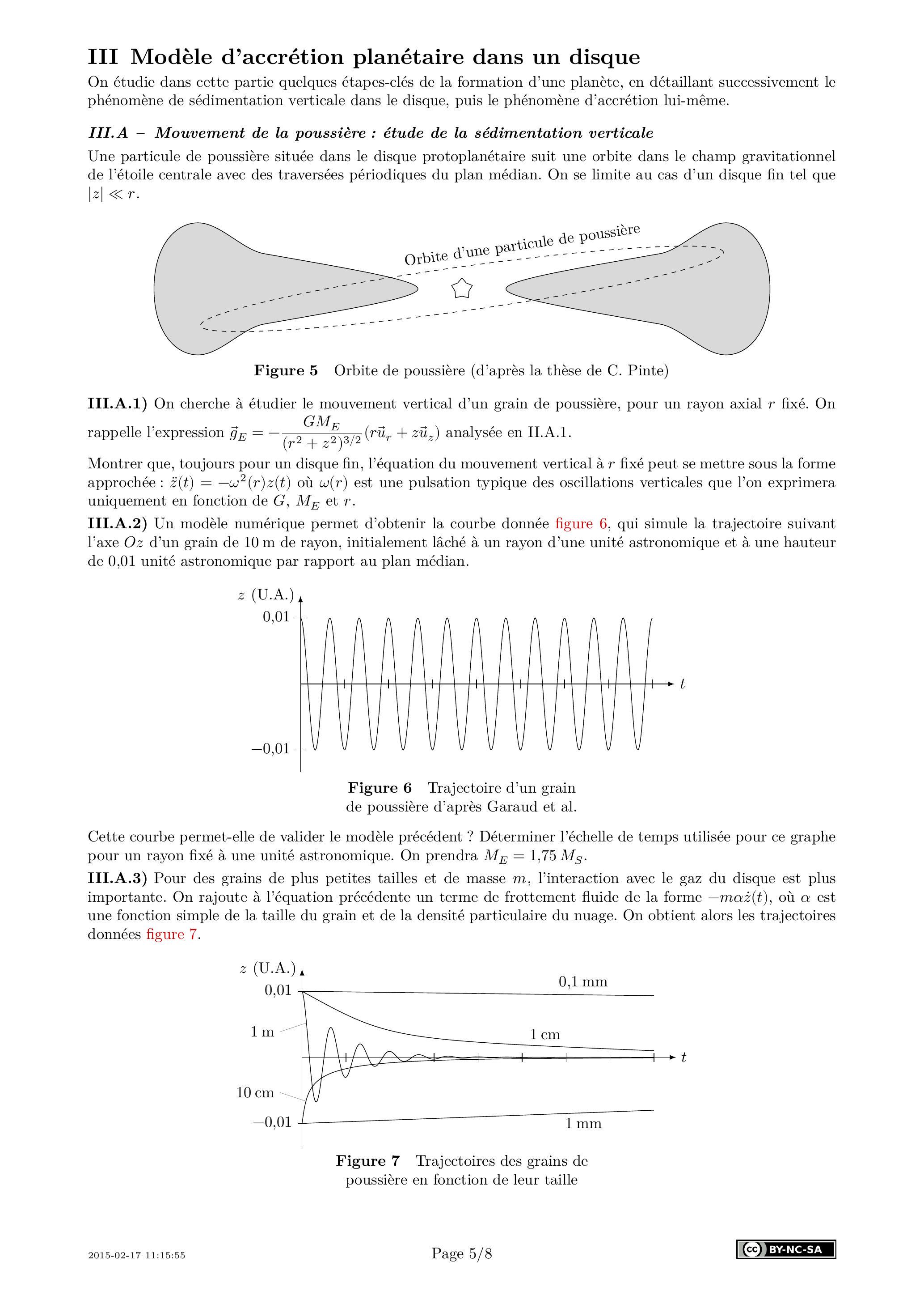 Une particule de poussière située dans le disque protoplanétaire suit une orbite dans le champ gravitationnel de l'étoile centrale avec des traversées périodiques du plan médian. On se limite au cas d'un disque fin tel que .