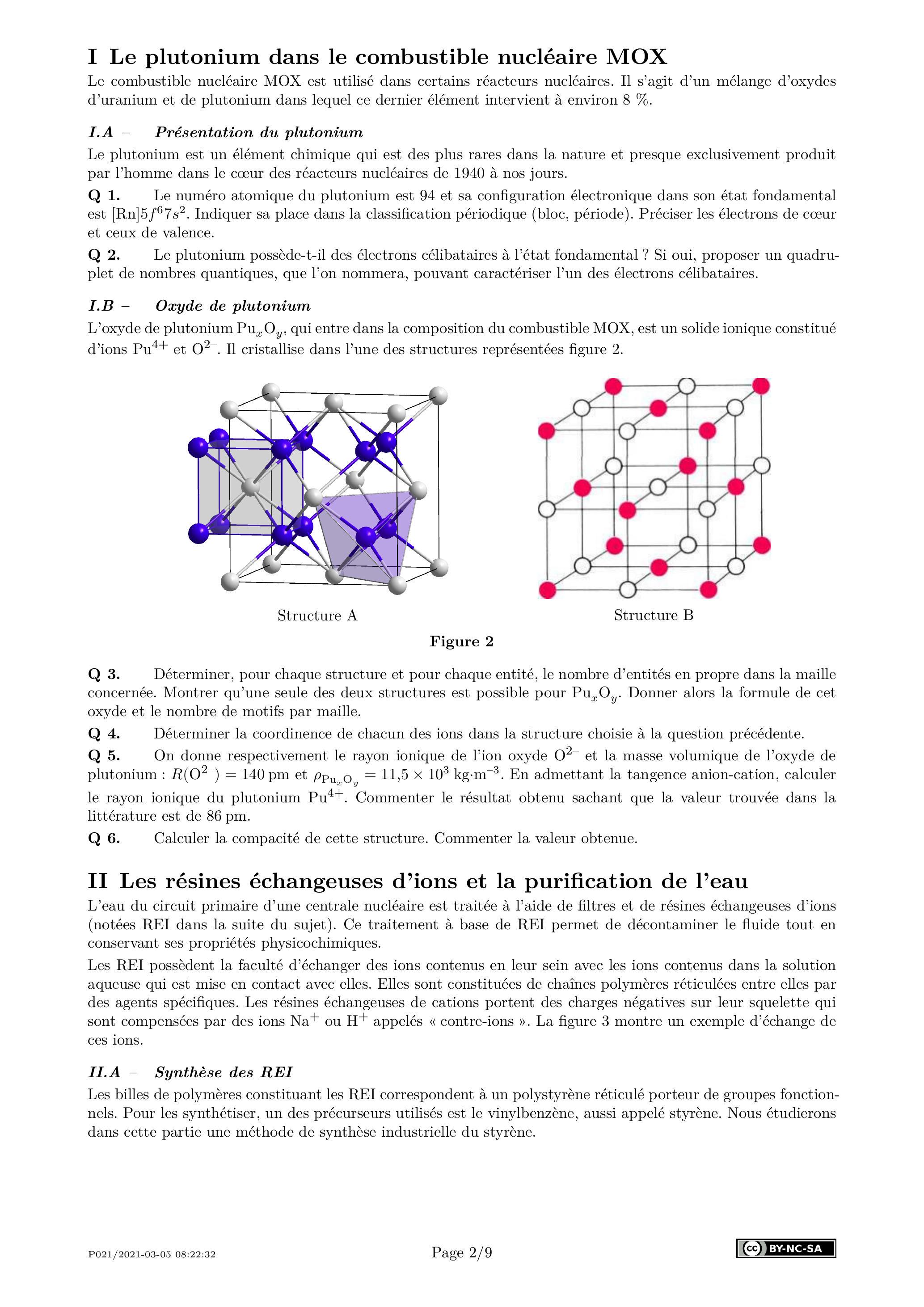 L'oxyde de plutonium , qui entre dans la composition du combustible MOX, est un solide ionique constitué d'ions et . Il cristallise dans l'une des structures représentées figure 2.