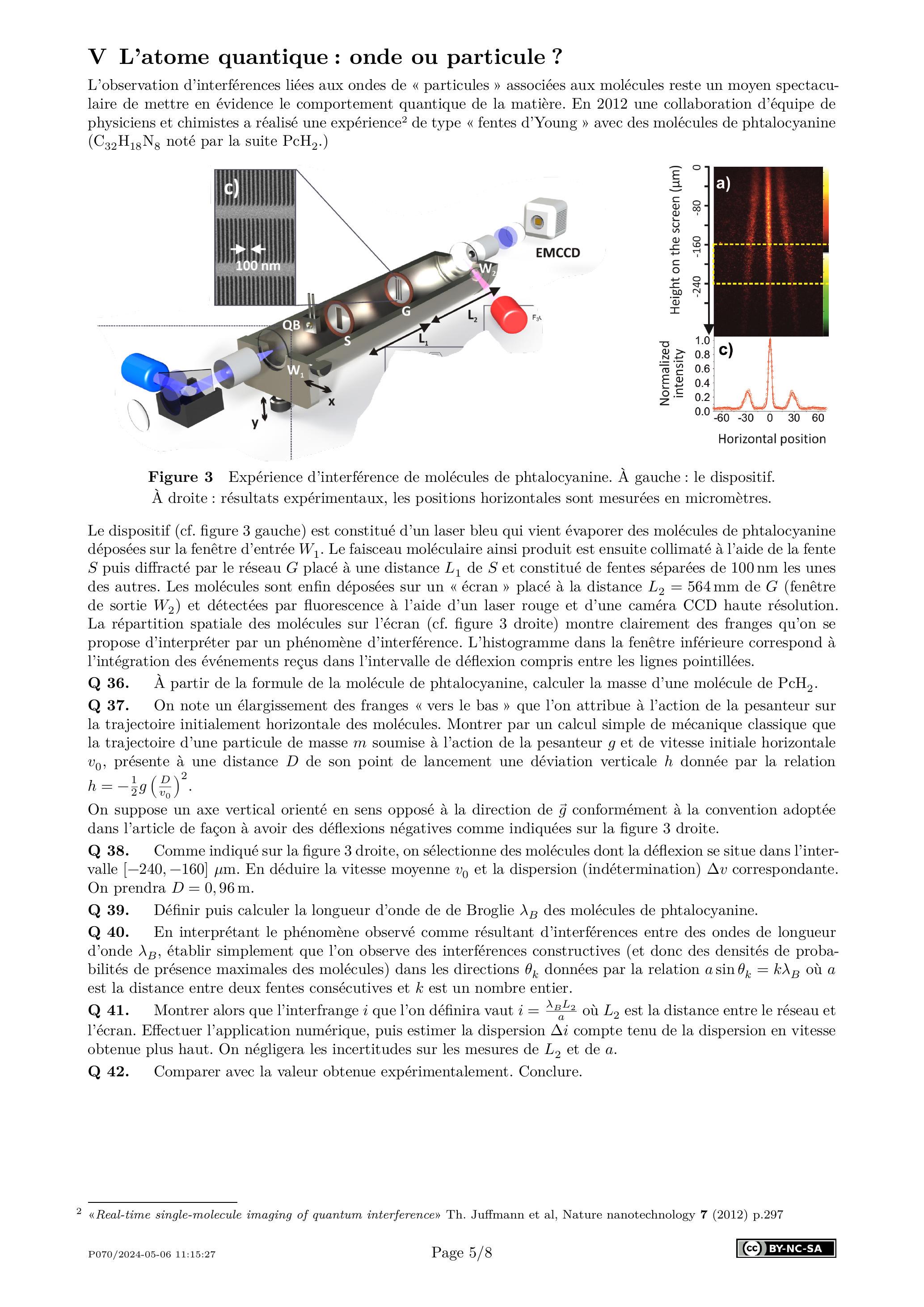Q 39. Définir puis calculer la longueur d'onde de de Broglie des molécules de phtalocyanine.