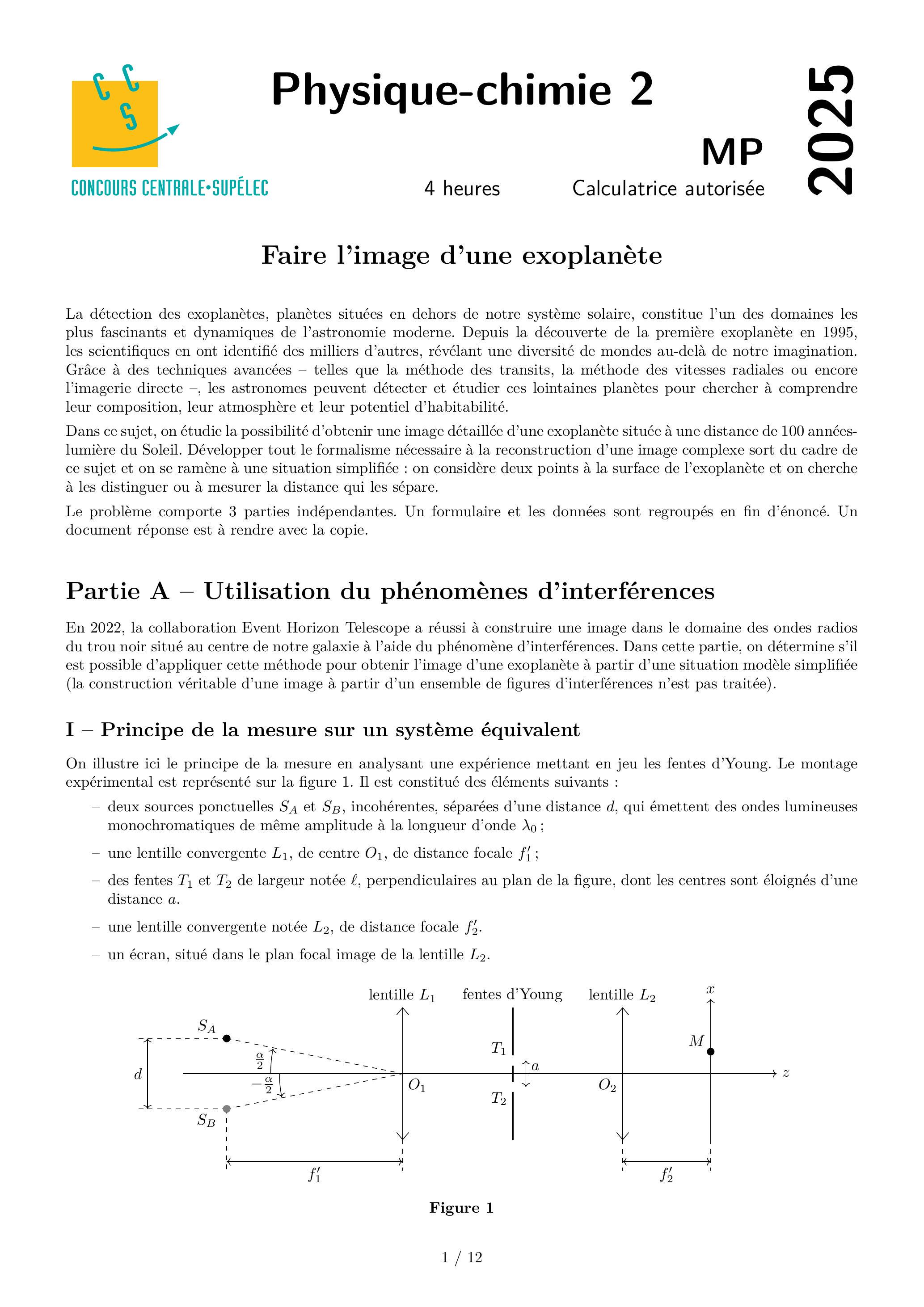 Centrale Physique Chimie 2 MP 2025 - Version Web LaTeX | WikiPrépa | WikiPrépa