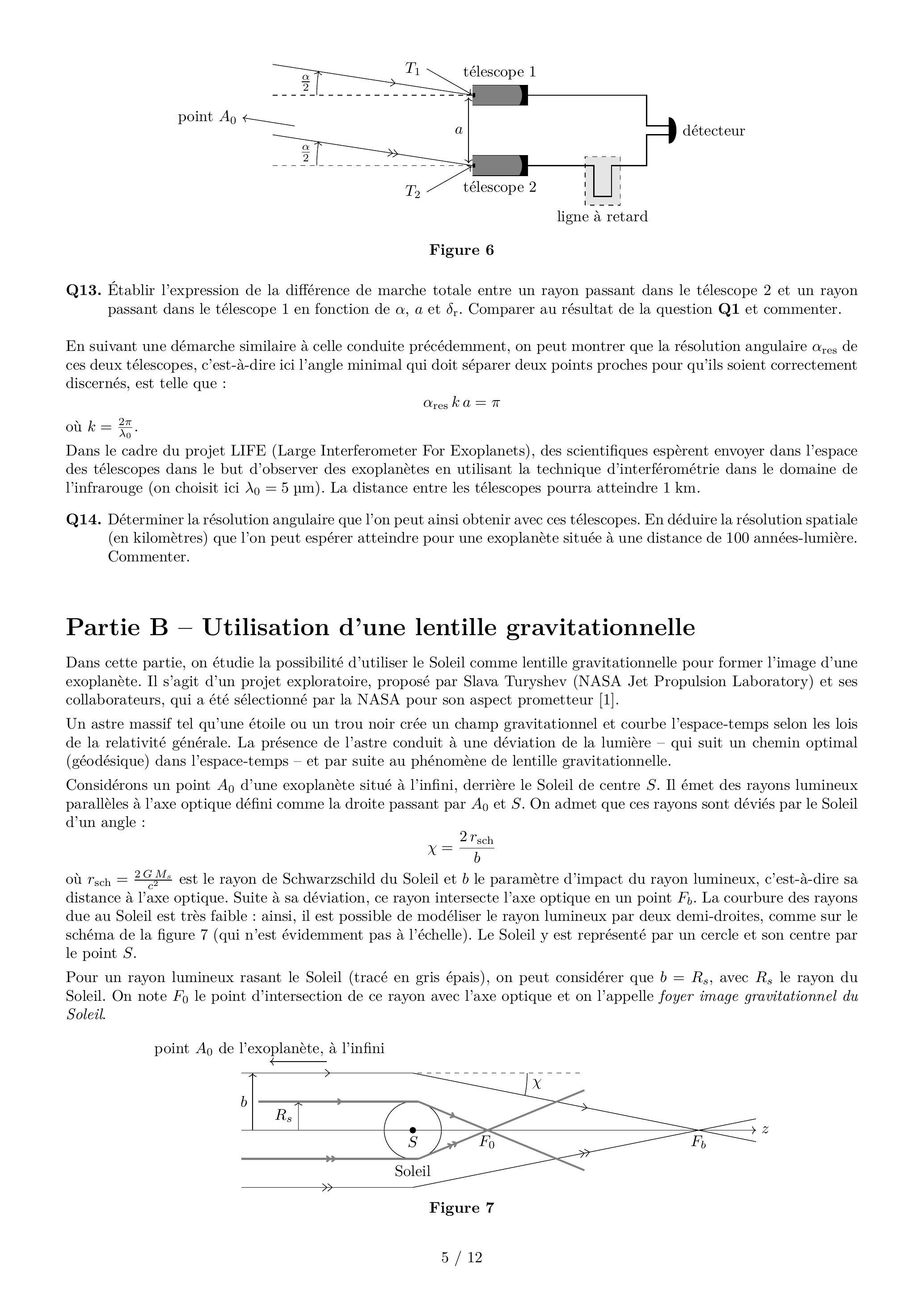 Q13. Établir l'expression de la différence de marche totale entre un rayon passant dans le télescope 2 et un rayon passant dans le télescope 1 en fonction de et . Comparer au résultat de la question Q1 et commenter.