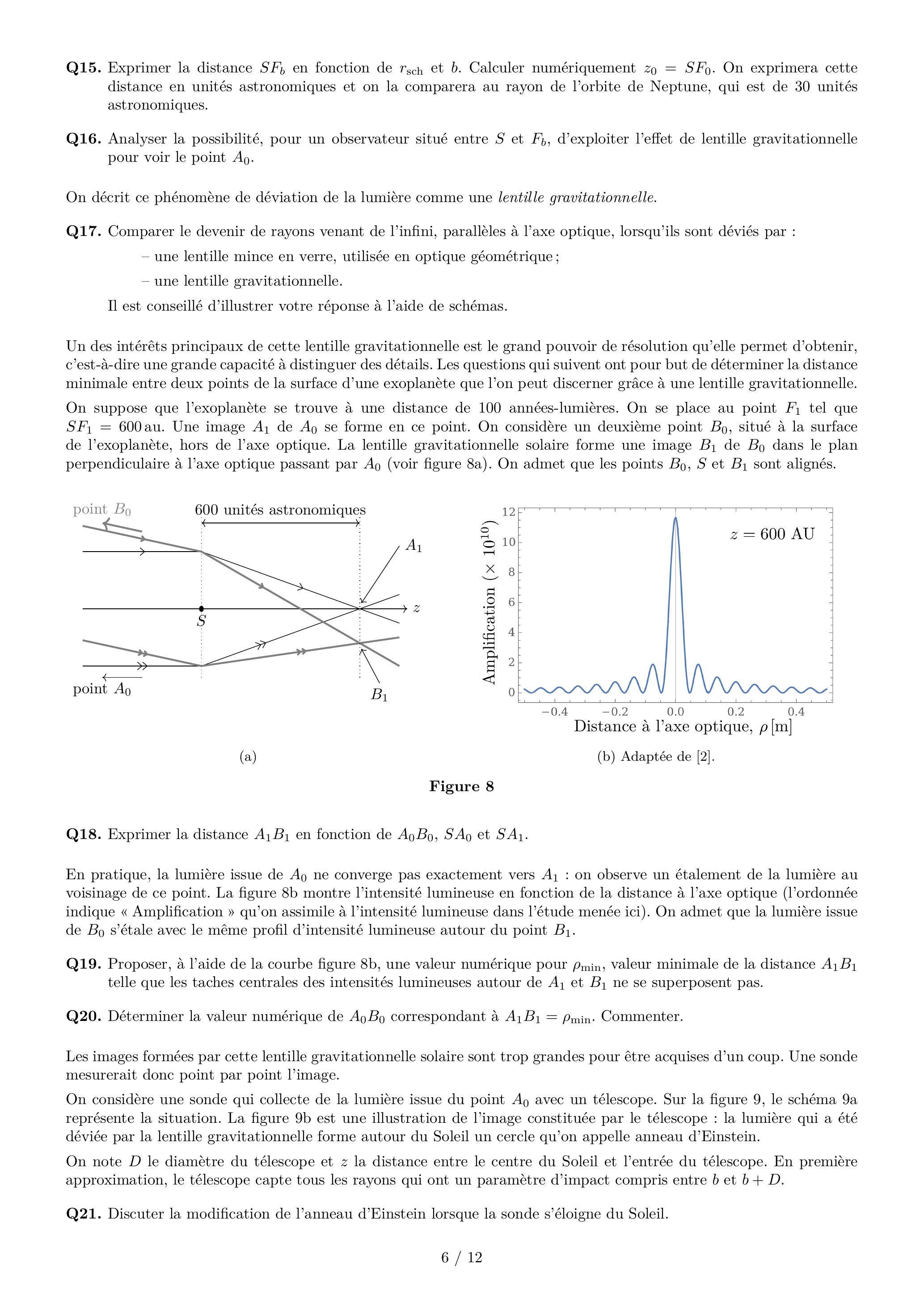Q22. Justifier que . Calculer numériquement pour un télescope situé en (donc pour ) et . Commenter.