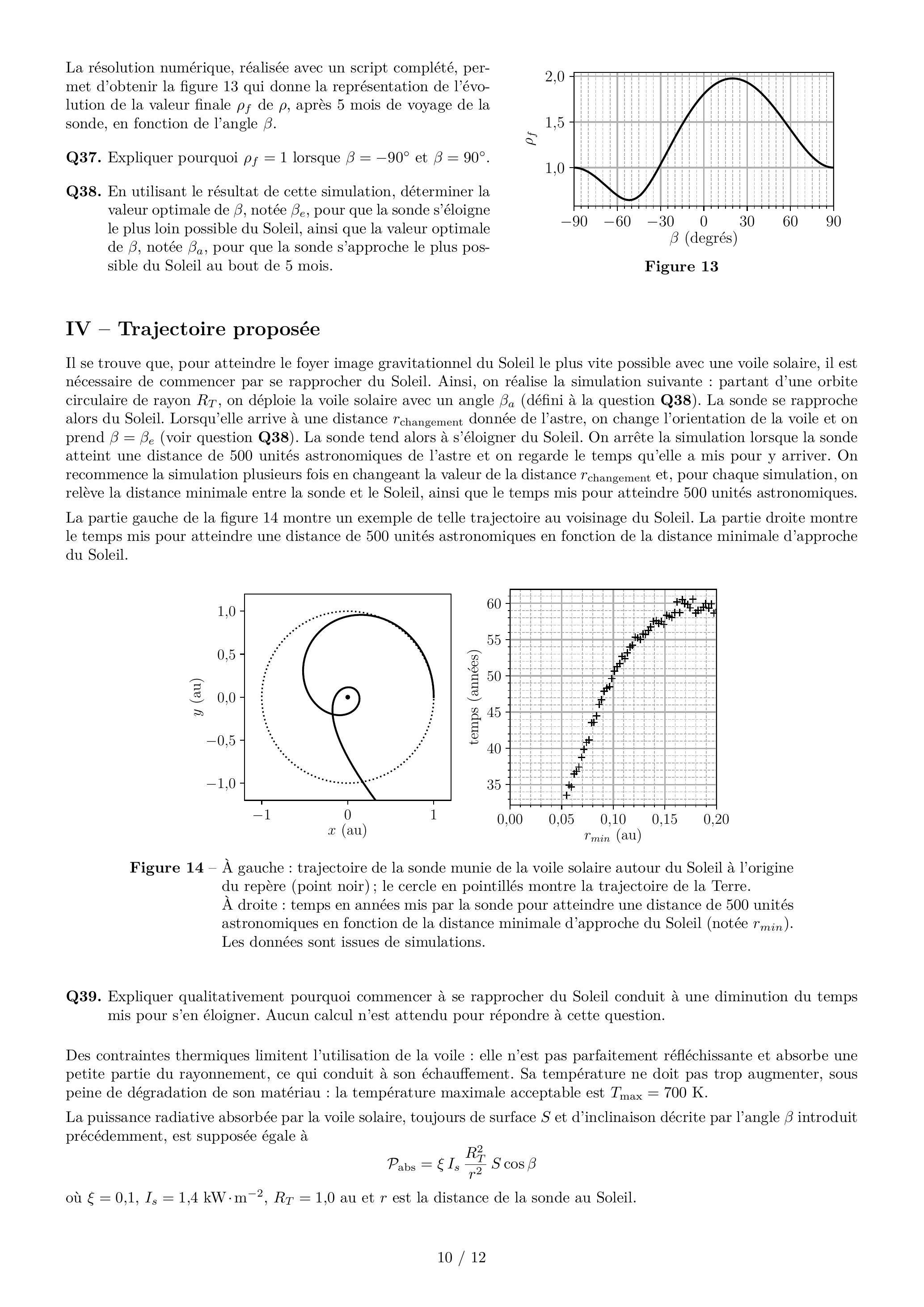 Q40. Proposer une estimation du temps minimal envisageable pour qu'une sonde atteigne une distance de 500 unités astronomiques du Soleil, compte tenu des contraintes thermiques et dans les conditions des simulations présentées à la figure 14. On explicitera soigneusement la démarche suivie avec les éventuels choix effectués.
