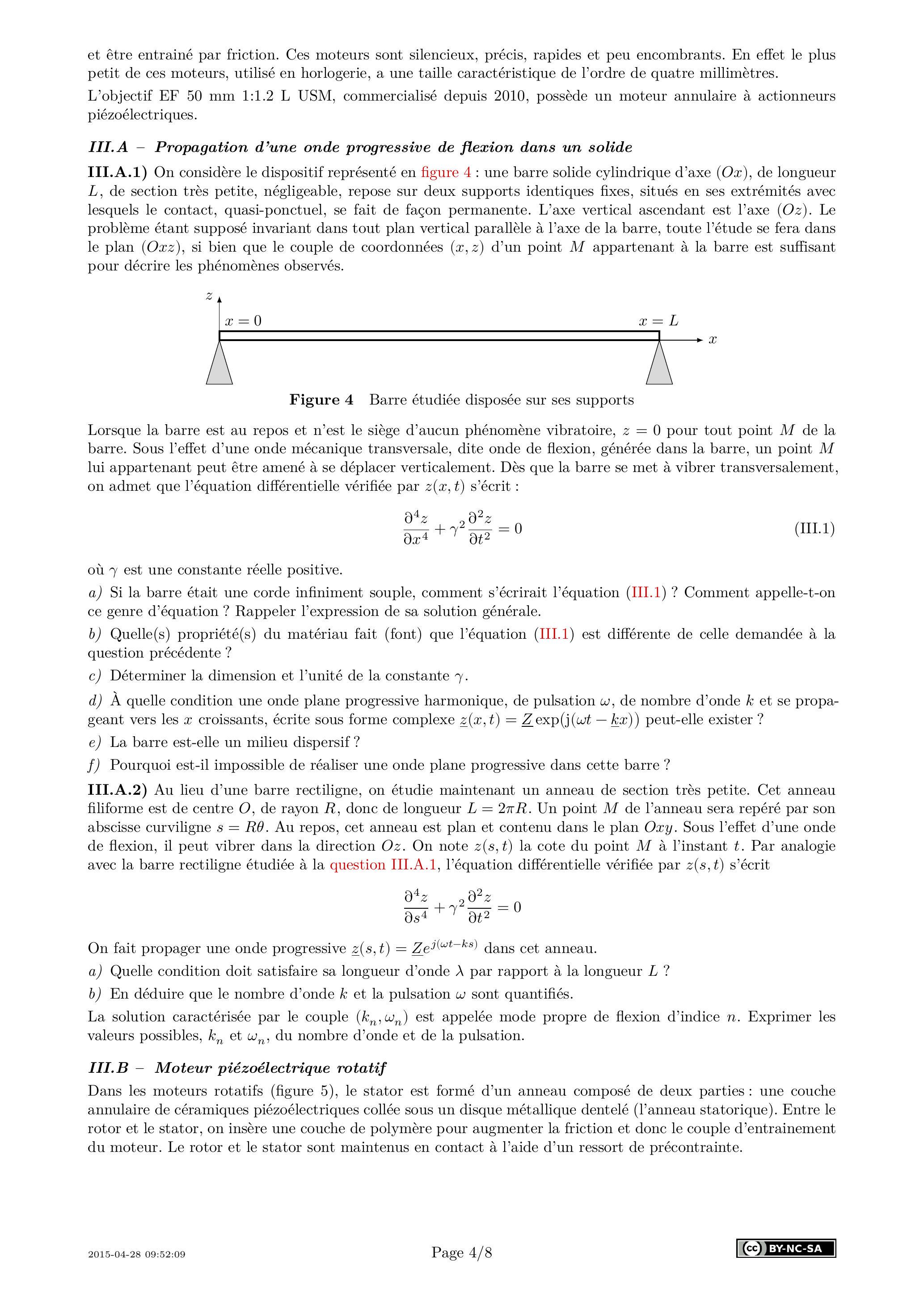 a) Si la barre était une corde infiniment souple, comment s'écrirait l'équation (III.1) ? Comment appelle-t-on ce genre d'équation? Rappeler l'expression de sa solution générale.