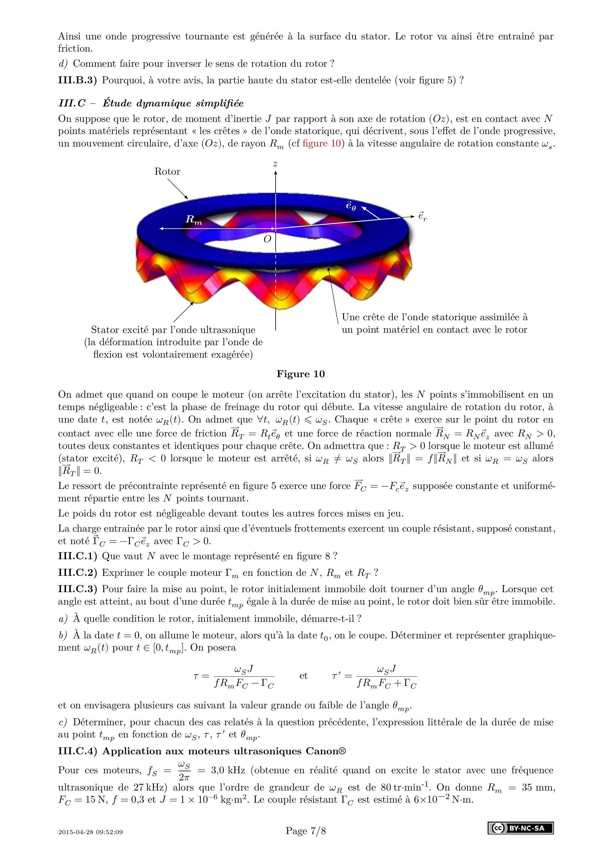 On admet que quand on coupe le moteur (on arrête l'excitation du stator), les points s'immobilisent en un temps négligeable : c'est la phase de freinage du rotor qui débute. La vitesse angulaire de rotation du rotor, à une date , est notée . On admet que . Chaque «crête» exerce sur le point du rotor en contact avec elle une force de friction et une force de réaction normale avec , toutes deux constantes et identiques pour chaque crête. On admettra que : lorsque le moteur est allumé (stator excité), lorsque le moteur est arrêté, si alors et si alors .
