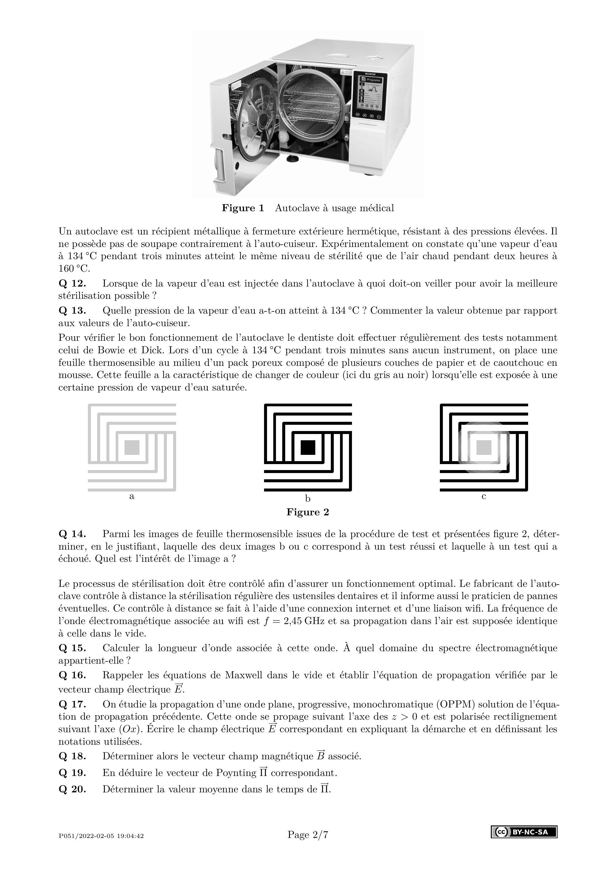 Le processus de stérilisation doit être contrôlé afin d'assurer un fonctionnement optimal. Le fabricant de l'autoclave contrôle à distance la stérilisation régulière des ustensiles dentaires et il informe aussi le praticien de pannes éventuelles. Ce contrôle à distance se fait à l'aide d'une connexion internet et d'une liaison wifi. La fréquence de l'onde électromagnétique associée au wifi est et sa propagation dans l'air est supposée identique à celle dans le vide.