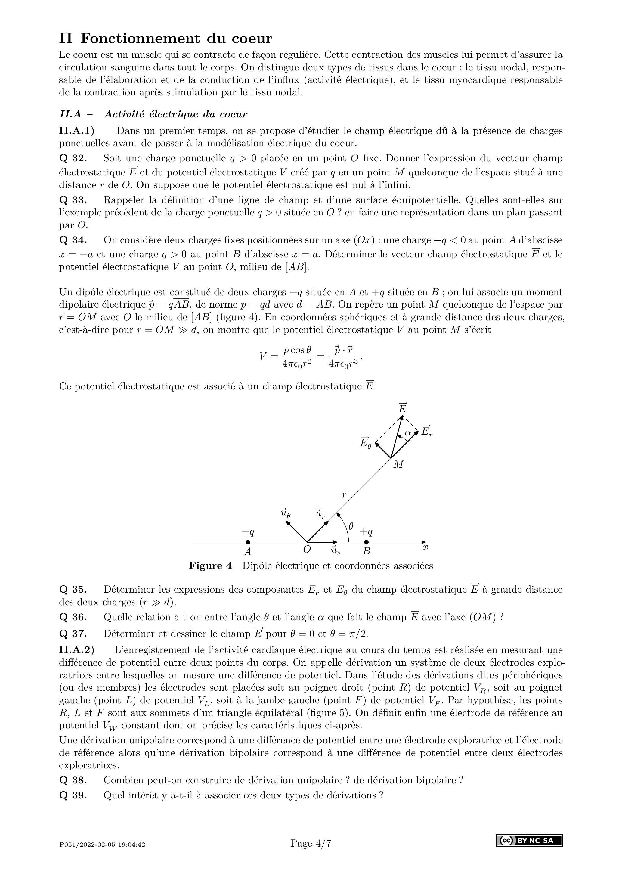 II.A.1) Dans un premier temps, on se propose d'étudier le champ électrique dû à la présence de charges ponctuelles avant de passer à la modélisation électrique du coeur.