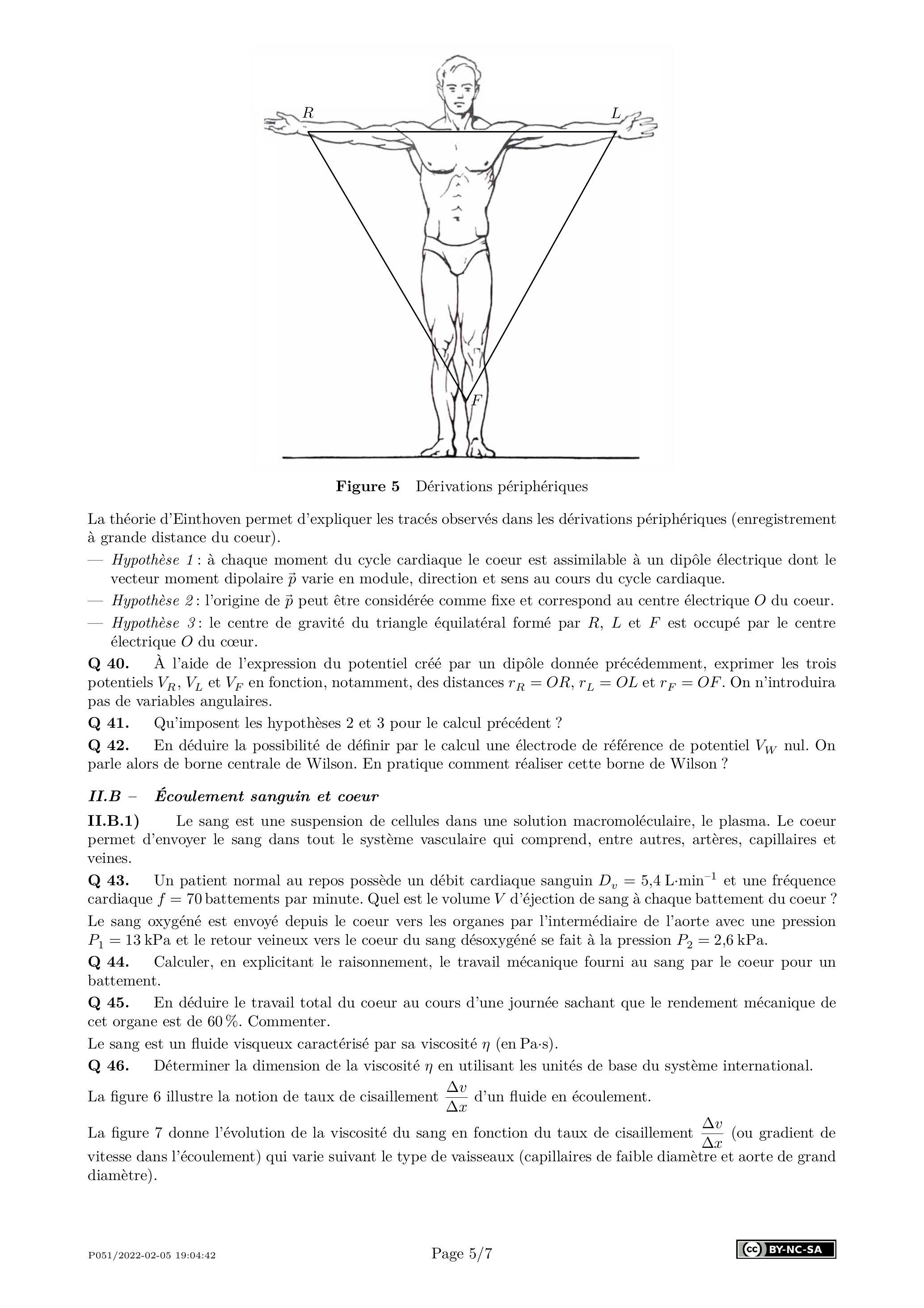 Q 43. Un patient normal au repos possède un débit cardiaque sanguin et une fréquence cardiaque battements par minute. Quel est le volume d'éjection de sang à chaque battement du coeur? Le sang oxygéné est envoyé depuis le coeur vers les organes par l'intermédiaire de l'aorte avec une pression et le retour veineux vers le coeur du sang désoxygéné se fait à la pression .