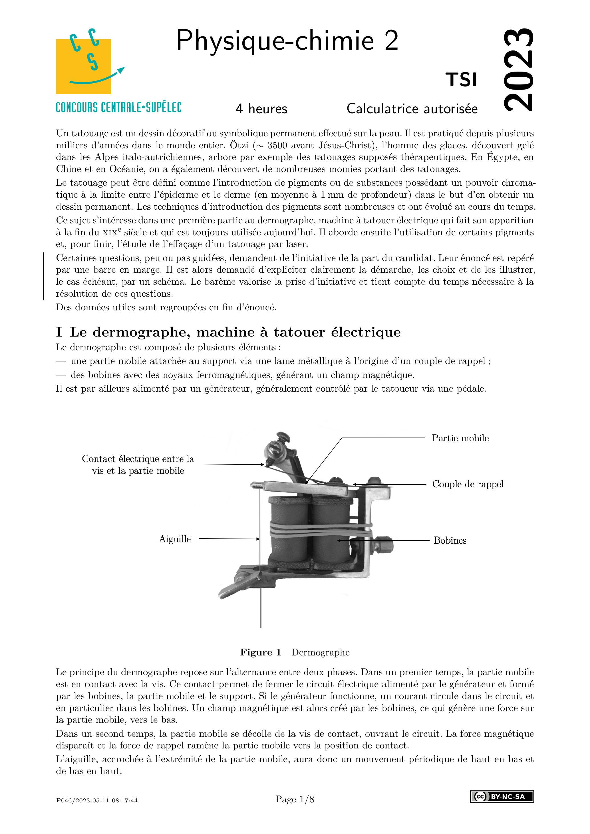 Centrale Physique Chimie 2 TSI 2023 - Version Web LaTeX | WikiPrépa | WikiPrépa