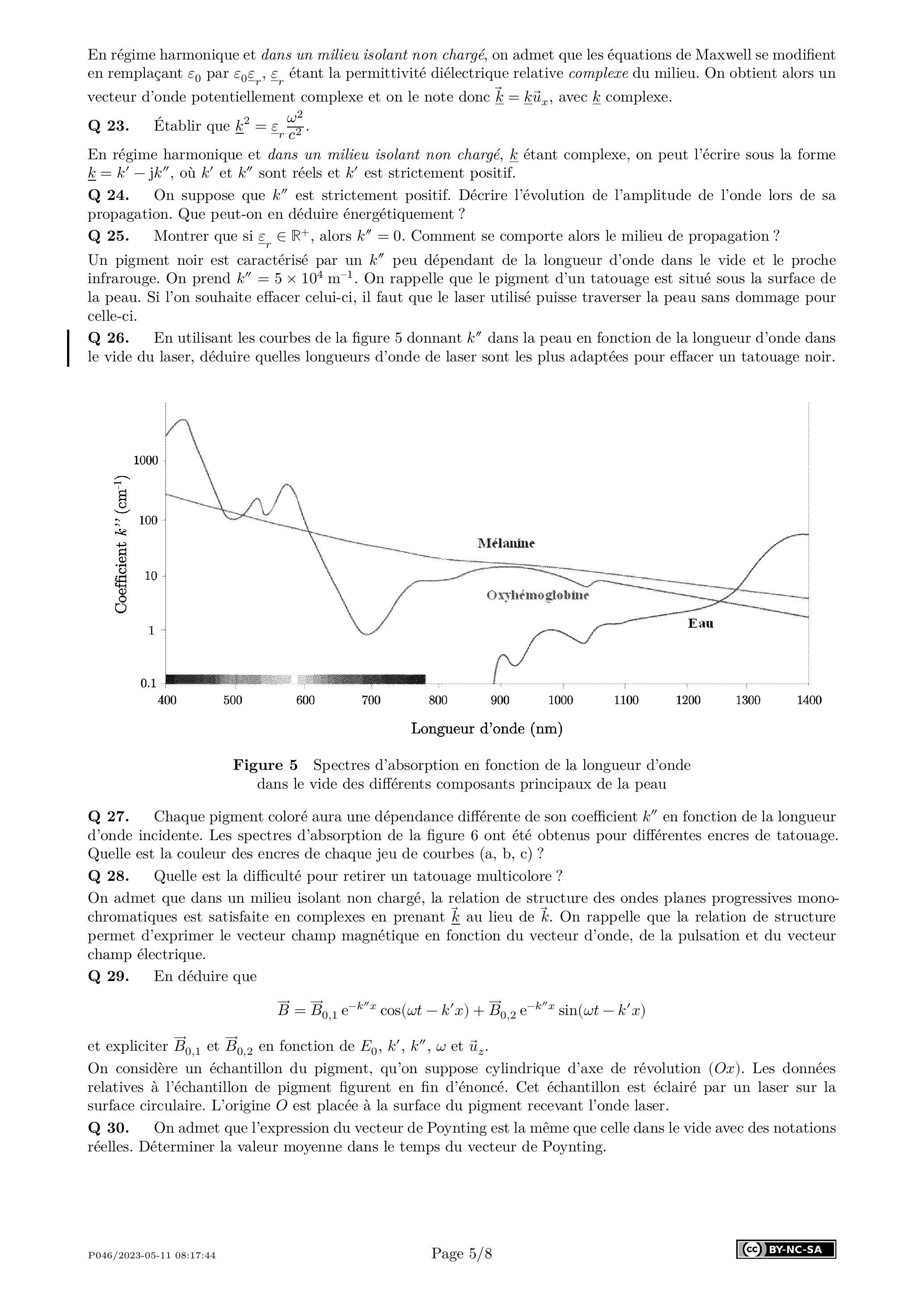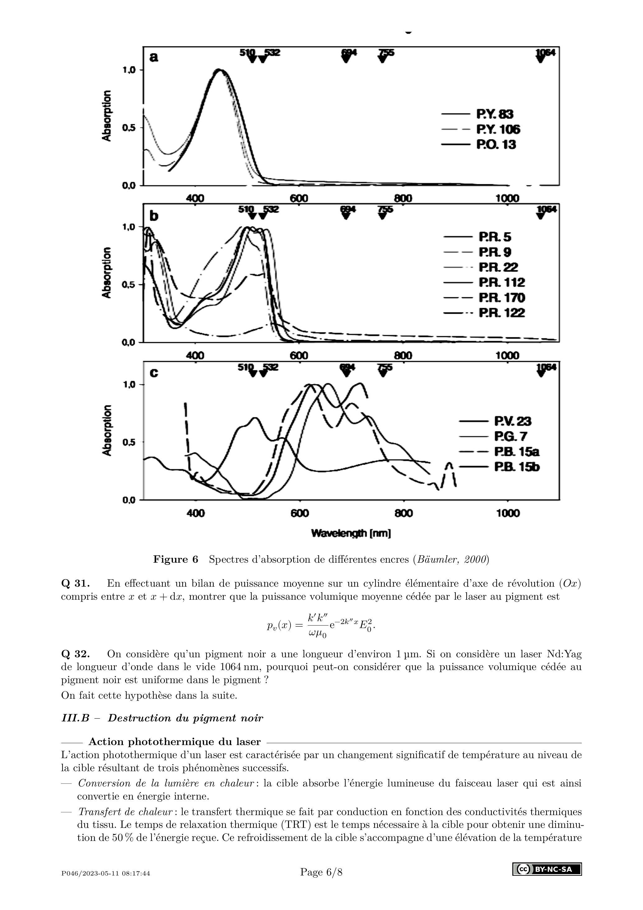 Q 32. On considère qu'un pigment noir a une longueur d'environ . Si on considère un laser Nd:Yag de longueur d'onde dans le vide 1064 nm , pourquoi peut-on considérer que la puissance volumique cédée au pigment noir est uniforme dans le pigment ?