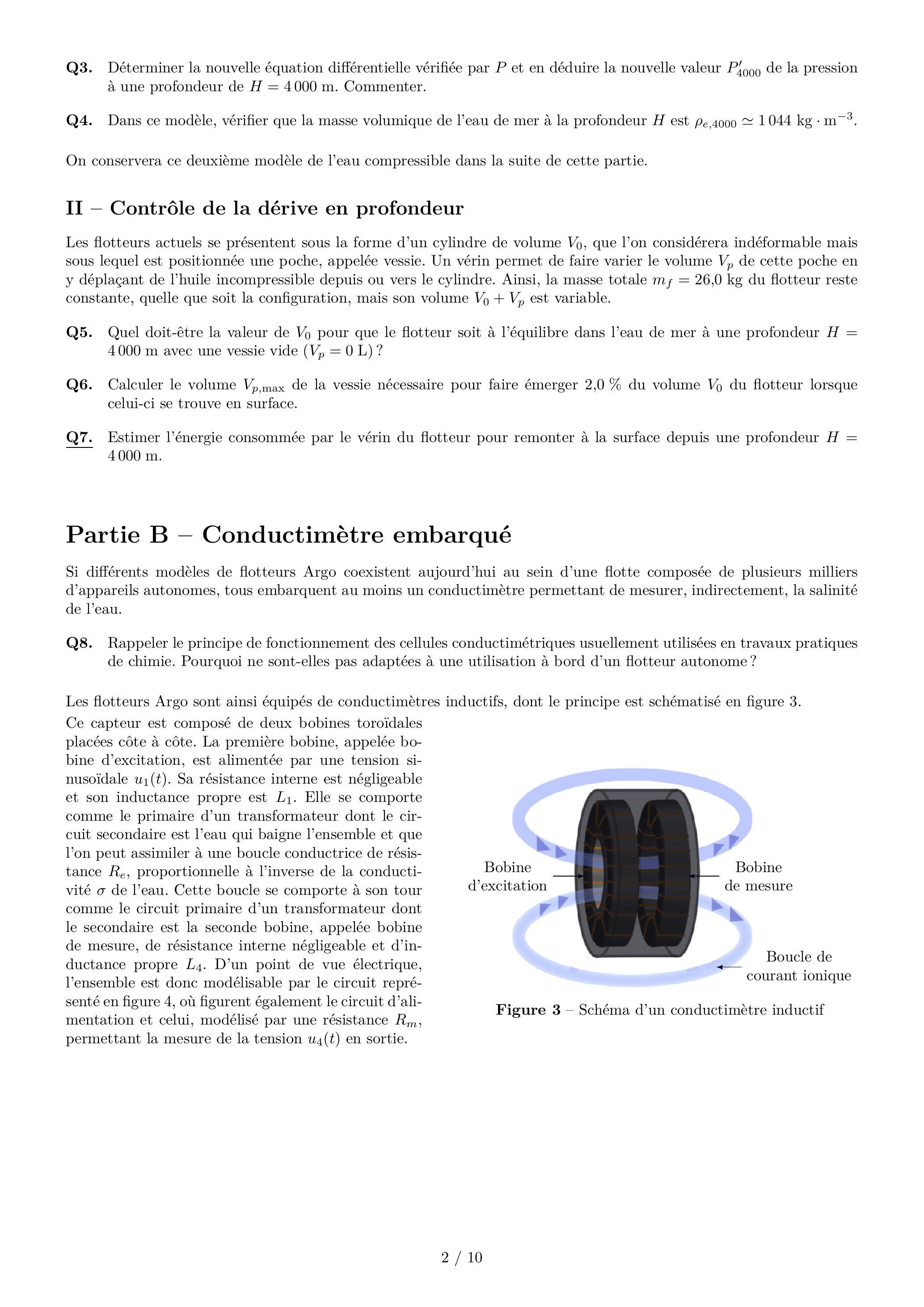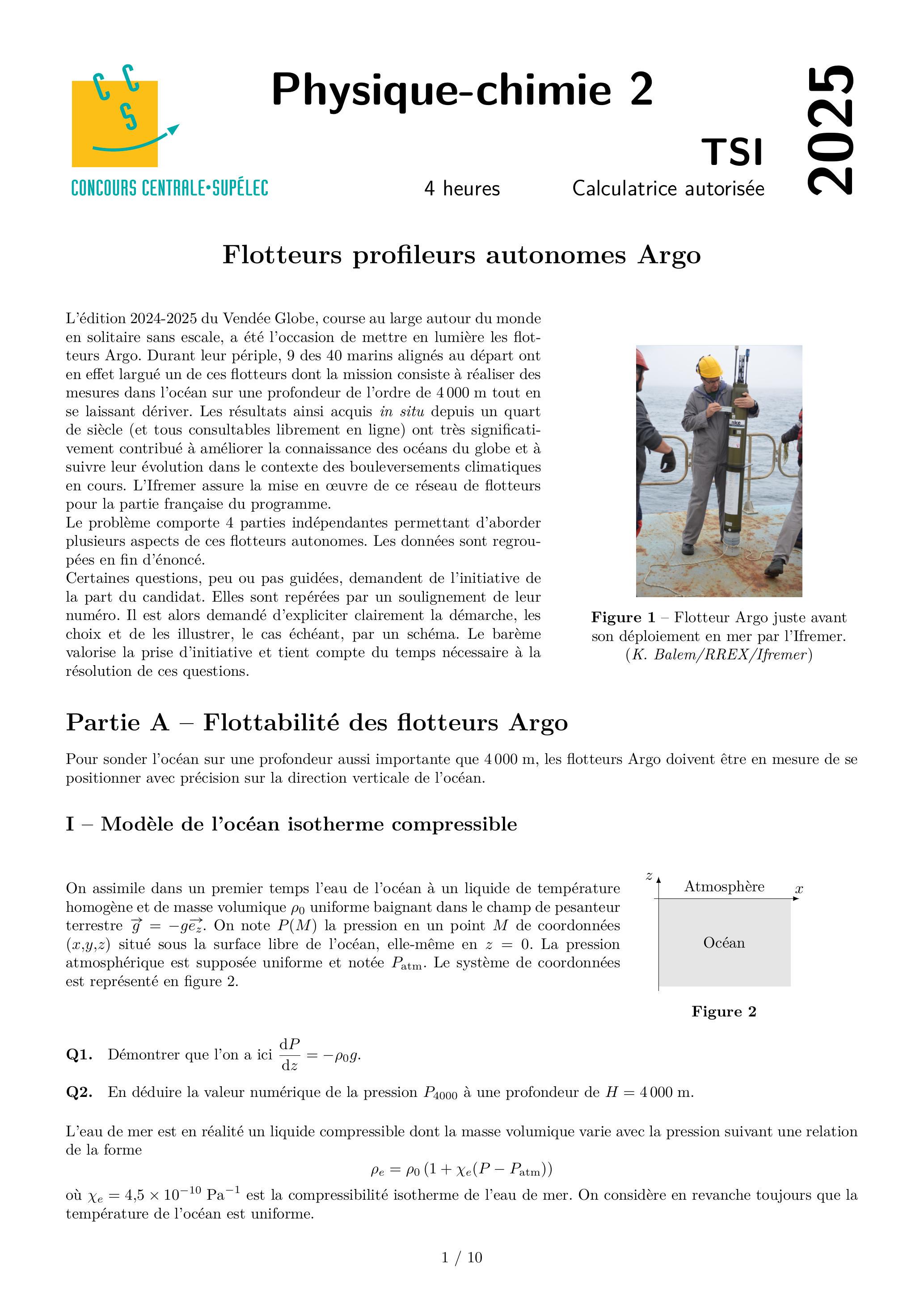 Le problème comporte 4 parties indépendantes permettant d'aborder plusieurs aspects de ces flotteurs autonomes. Les données sont regroupées en fin d'énoncé.