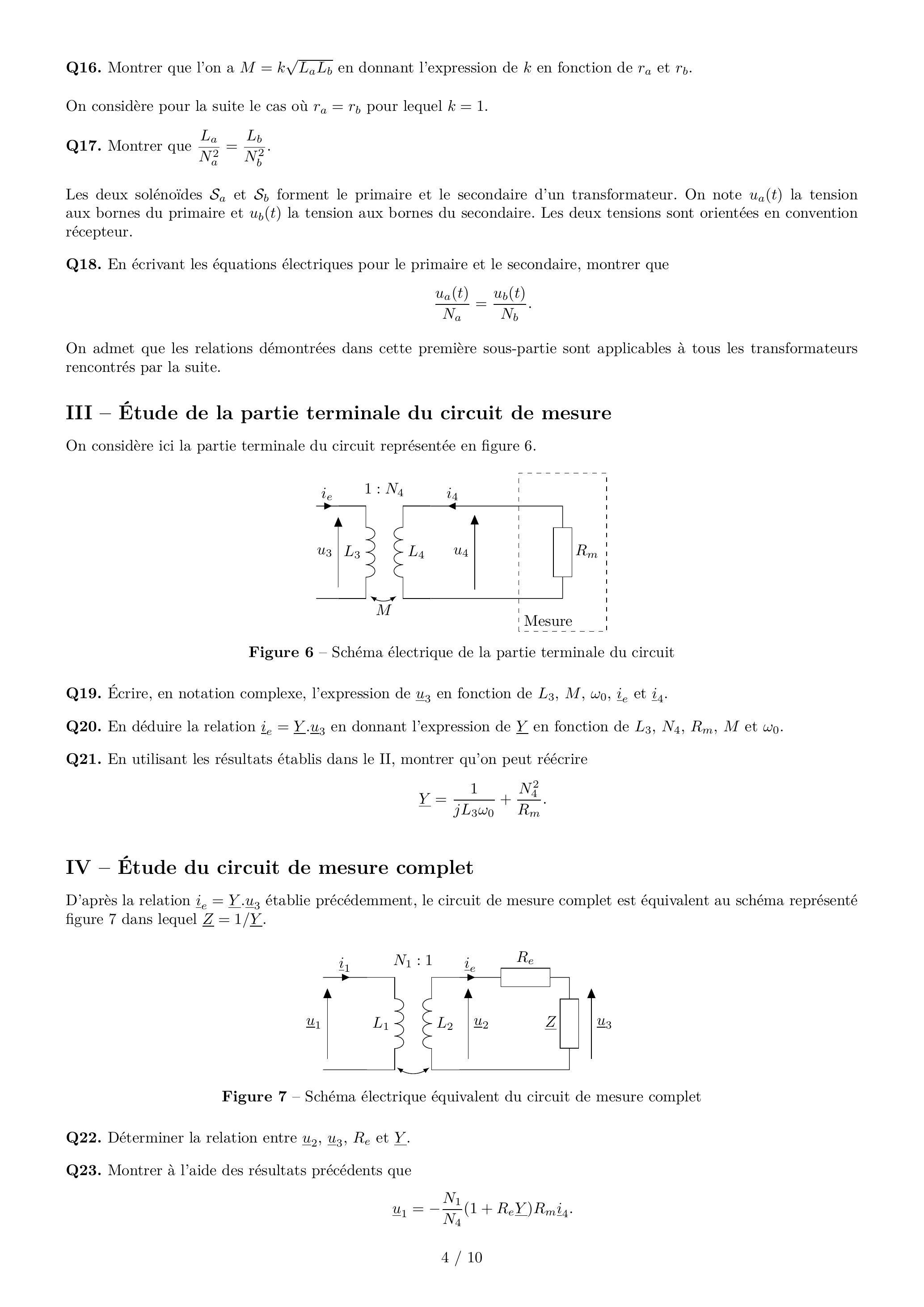 Q18. En écrivant les équations électriques pour le primaire et le secondaire, montrer que