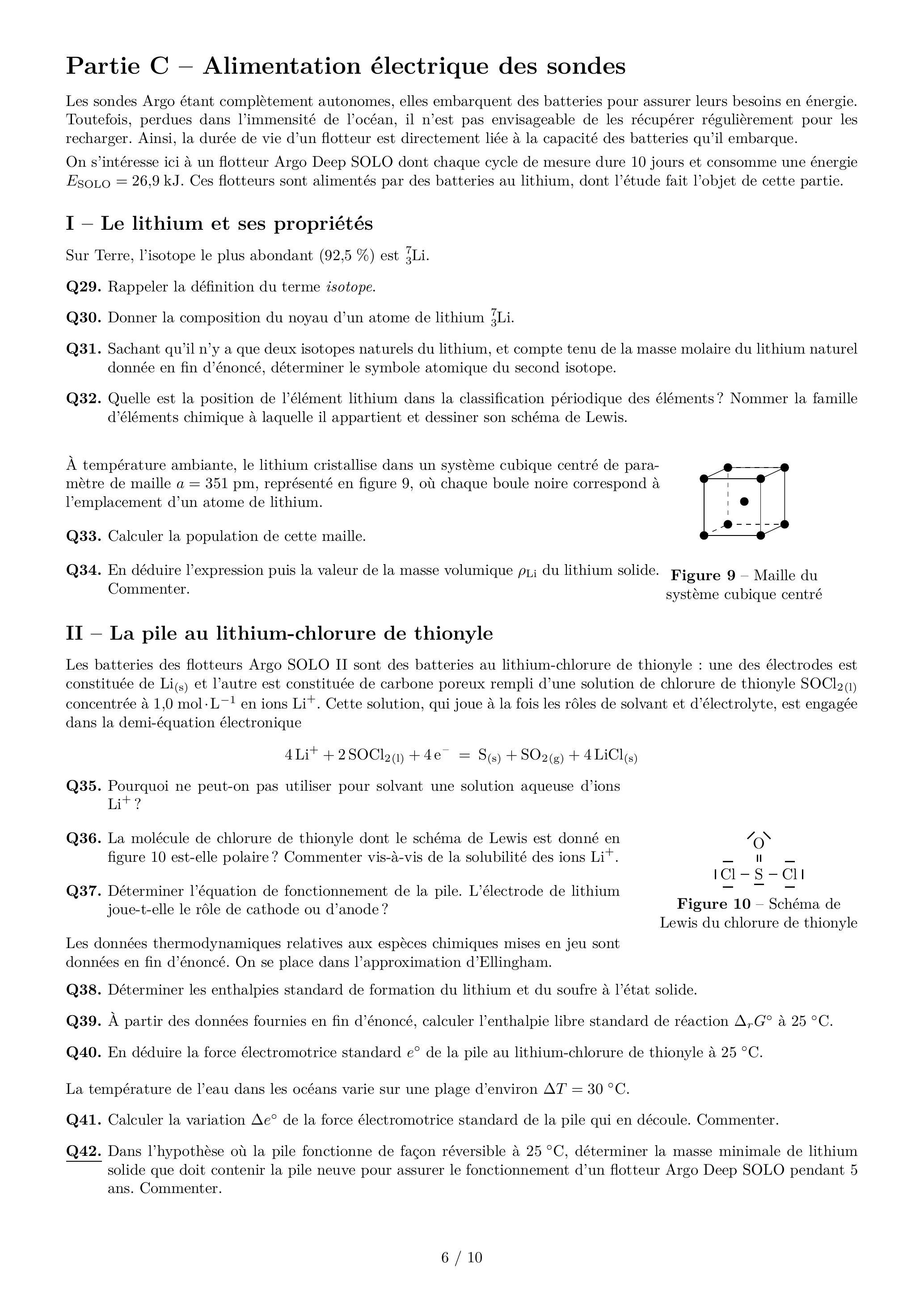Q42. Dans l'hypothèse où la pile fonctionne de façon réversible à , déterminer la masse minimale de lithium solide que doit contenir la pile neuve pour assurer le fonctionnement d'un flotteur Argo Deep SOLO pendant 5 ans. Commenter.