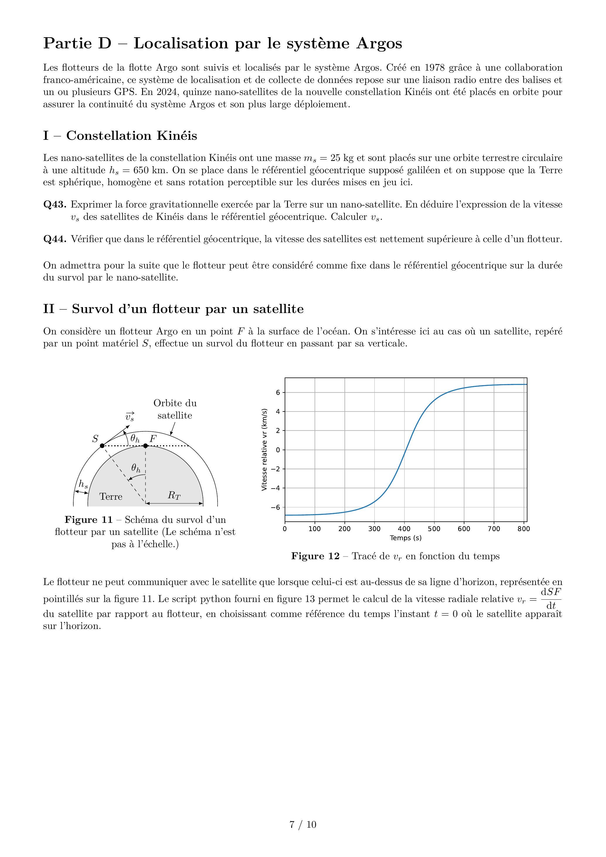 On admettra pour la suite que le flotteur peut être considéré comme fixe dans le référentiel géocentrique sur la durée du survol par le nano-satellite.