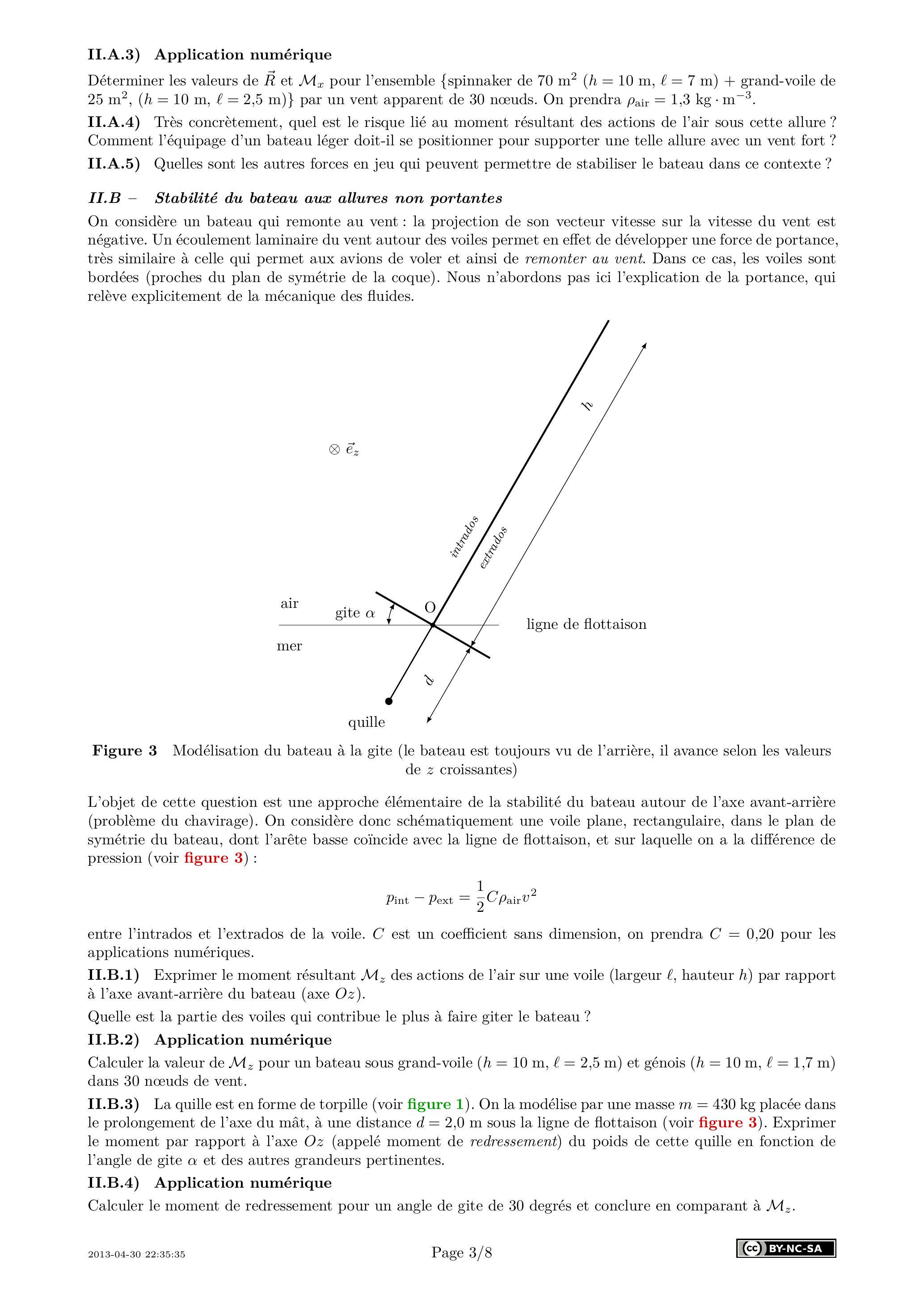 II.A.1) On peut prendre en compte l'effet du vent sur les voiles en considérant qu'il exerce sur celles-ci une surpression, appelée pression dynamique, donnée par :