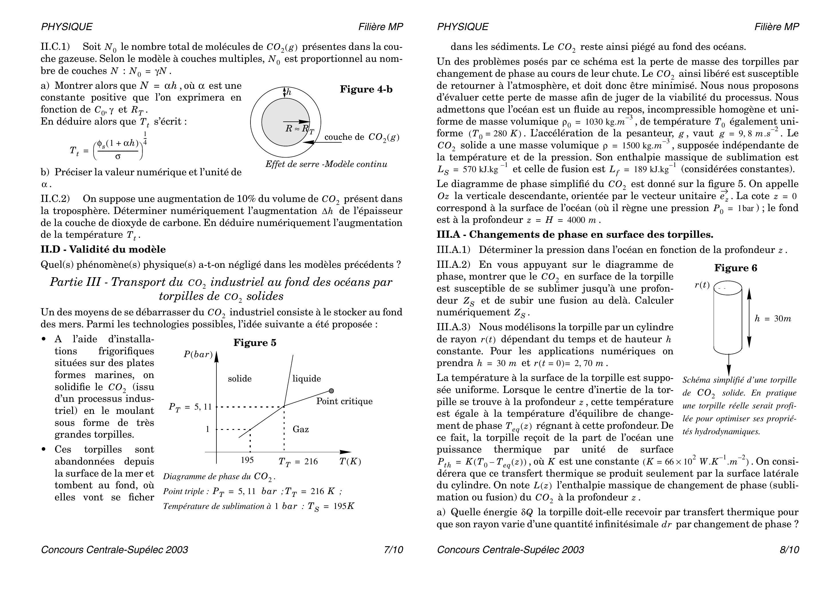 Le diagramme de phase simplifié du est donné sur la figure 5 . On appelle la verticale descendante, orientée par le vecteur unitaire . La cote correspond à la surface de l'océan (où il règne une pression bar); le fond est à la profondeur .