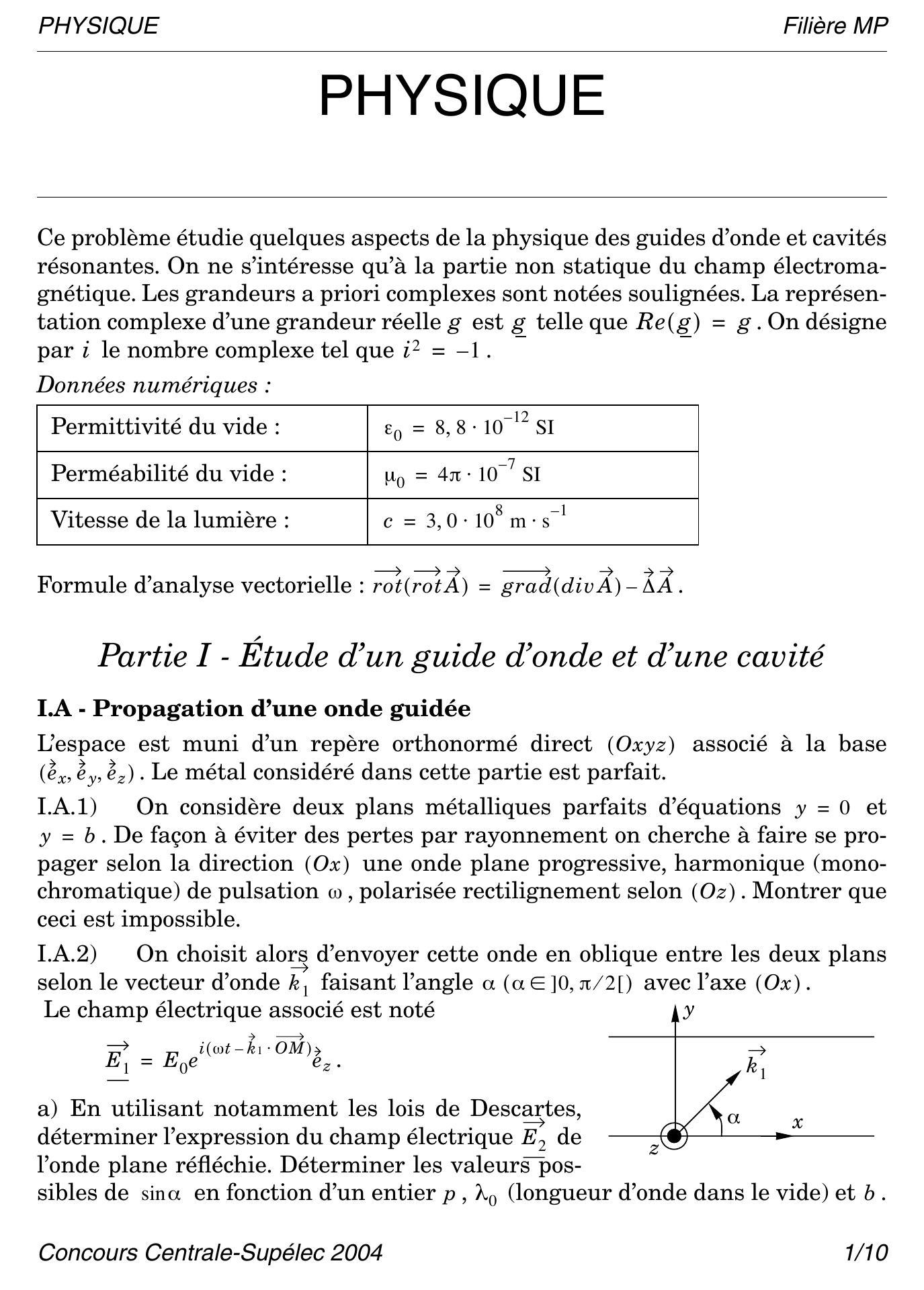 Centrale Physique MP 2004 - Version Web LaTeX | WikiPrépa | WikiPrépa