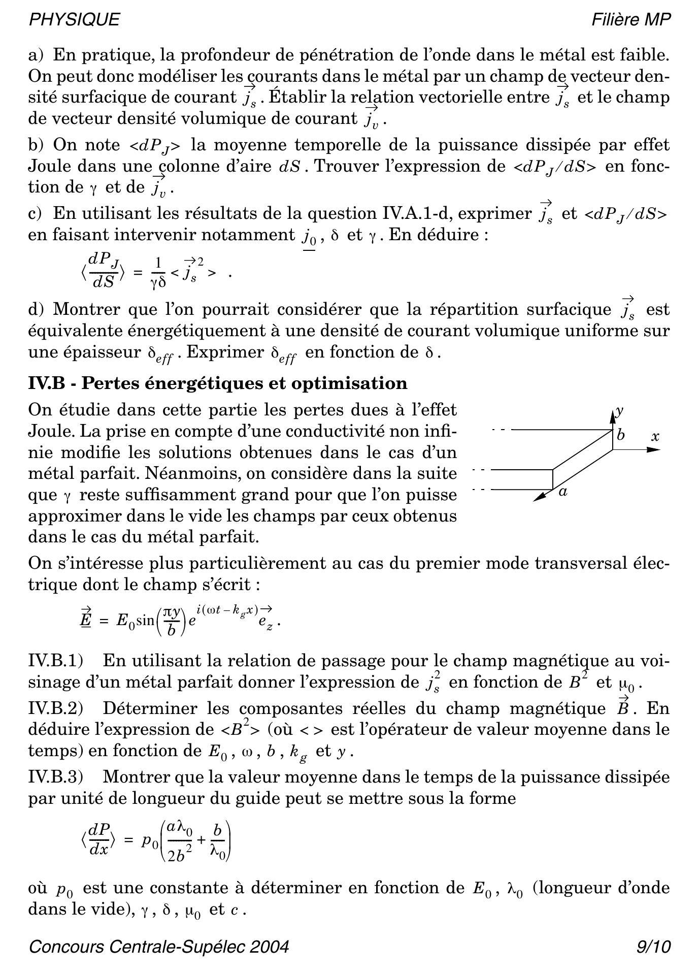 IV.B.3) Montrer que la valeur moyenne dans le temps de la puissance dissipée par unité de longueur du guide peut se mettre sous la forme