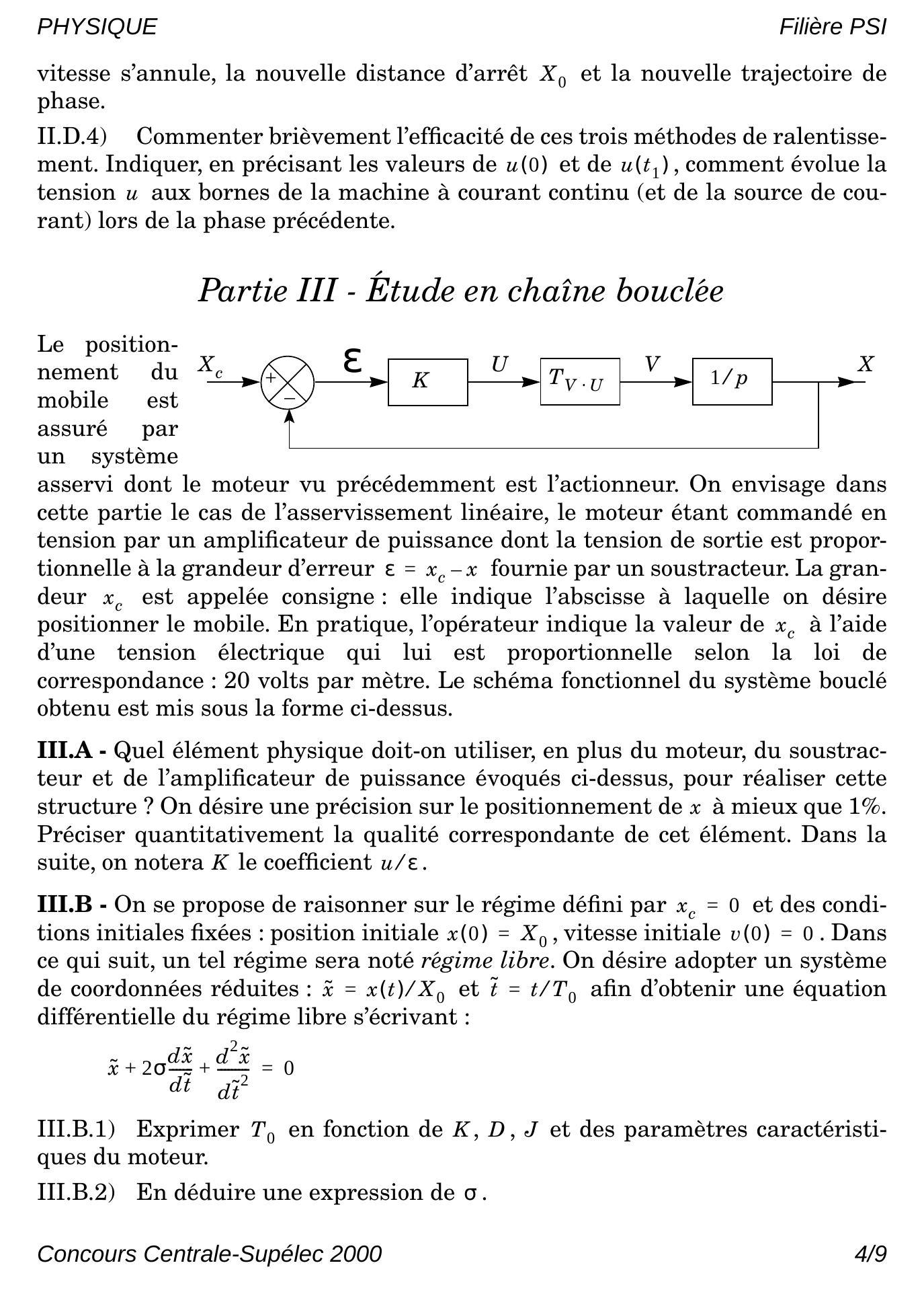 III.A - Quel élément physique doit-on utiliser, en plus du moteur, du soustracteur et de l'amplificateur de puissance évoqués ci-dessus, pour réaliser cette structure ? On désire une précision sur le positionnement de à mieux que . Préciser quantitativement la qualité correspondante de cet élément. Dans la suite, on notera le coefficient .
