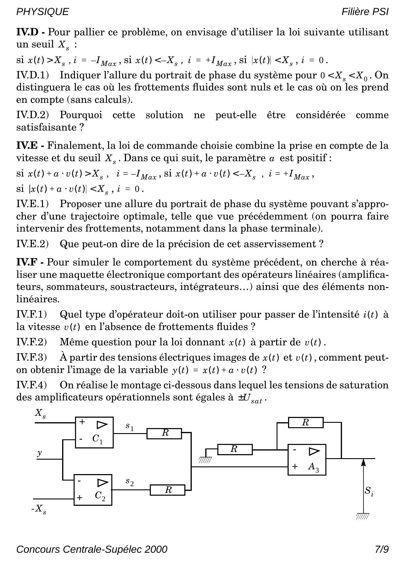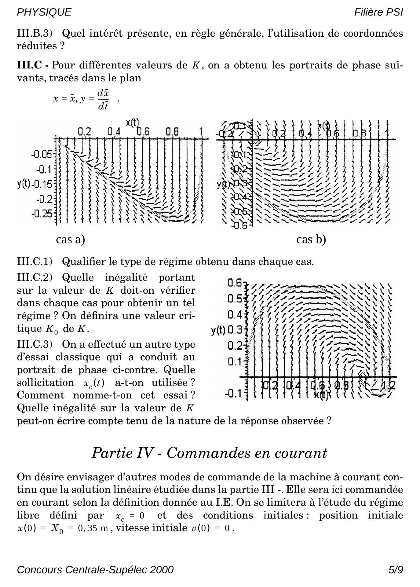 On désire envisager d'autres modes de commande de la machine à courant continu que la solution linéaire étudiée dans la partie III -. Elle sera ici commandée en courant selon la définition donnée au I.E. On se limitera à l'étude du régime libre défini par et des conditions initiales: position initiale , vitesse initiale .