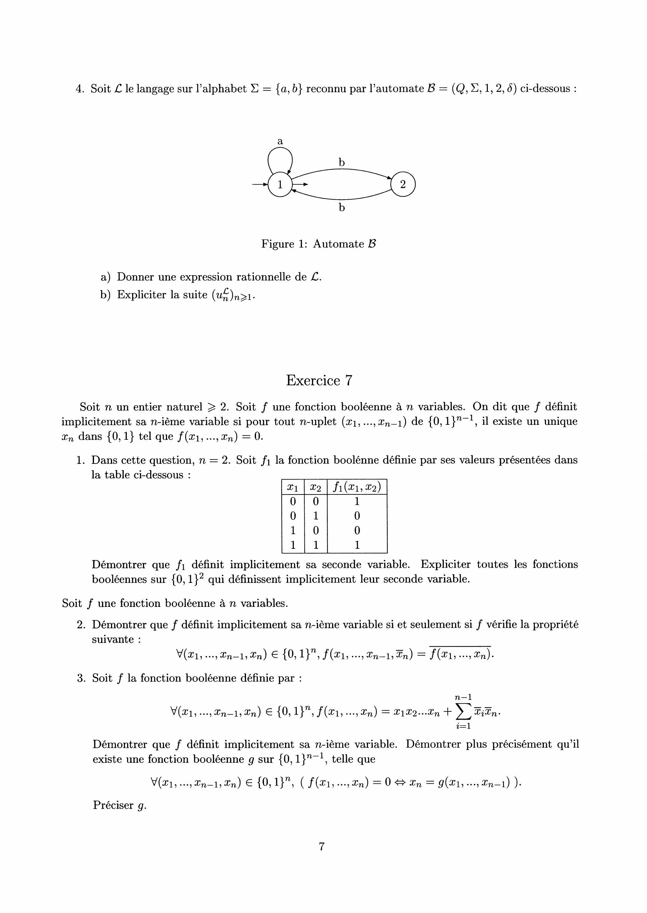 ii) On suppose . Soit le langage . Démontrer que est la réunion disjointe des langages et . En déduire la relation de récurrence :