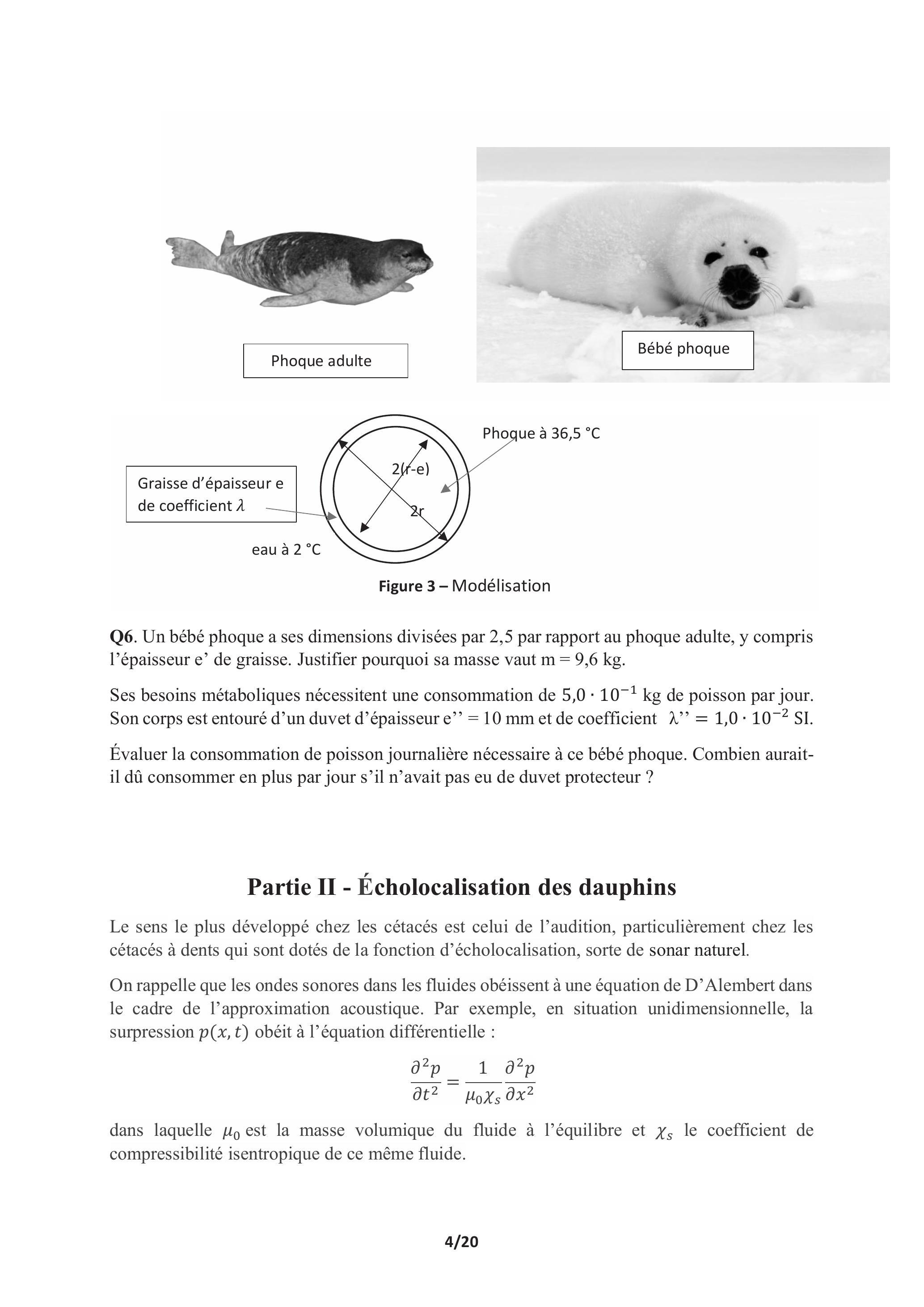 La partie I, faisant appel à la thermodynamique, s'intéresse à l'homéothermie des mammifères marins en prenant l'exemple d'un phoque.