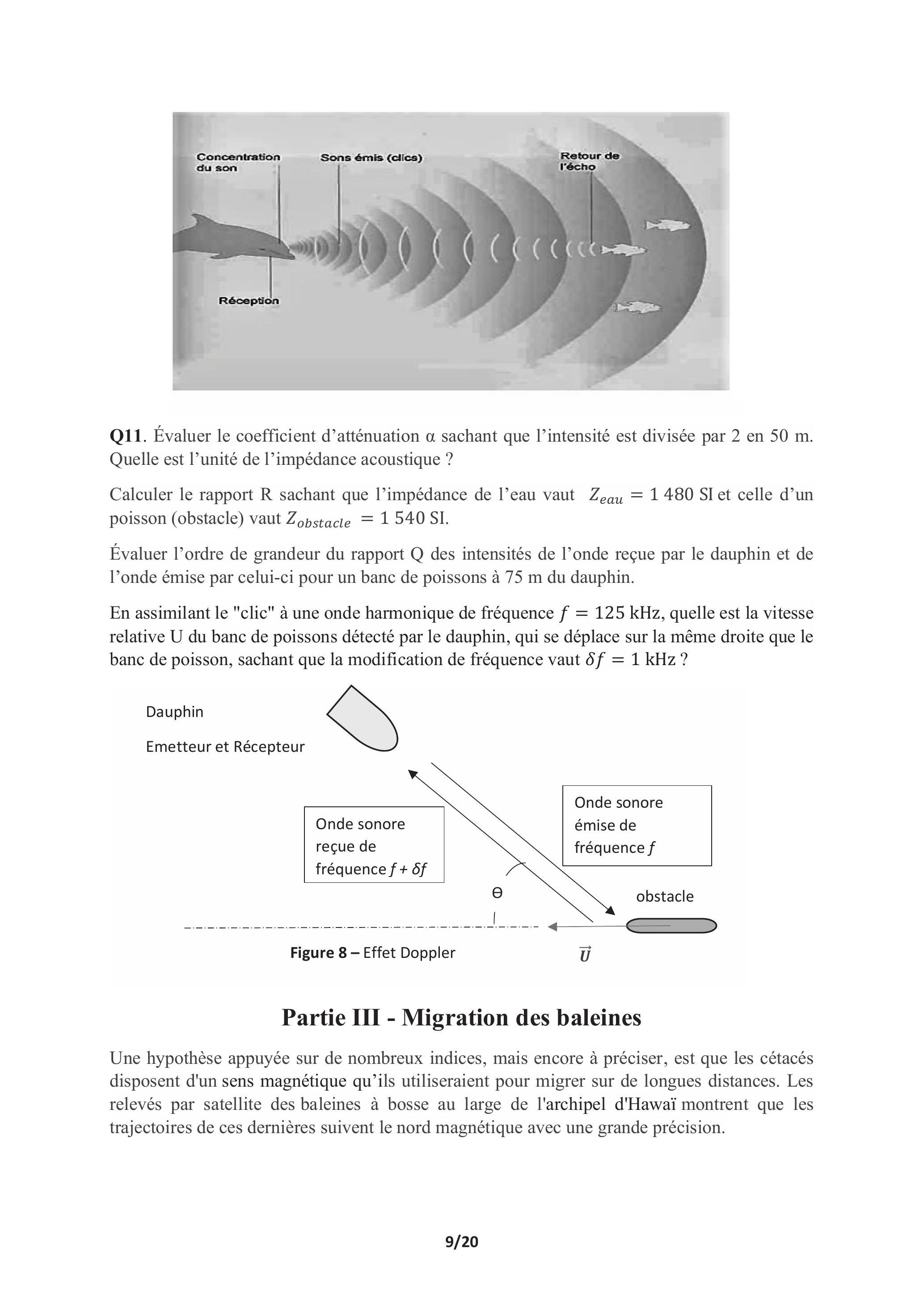 La partie II, faisant appel à l'étude physique des ondes acoustiques, s'intéresse à l'écholocalisation des dauphins.