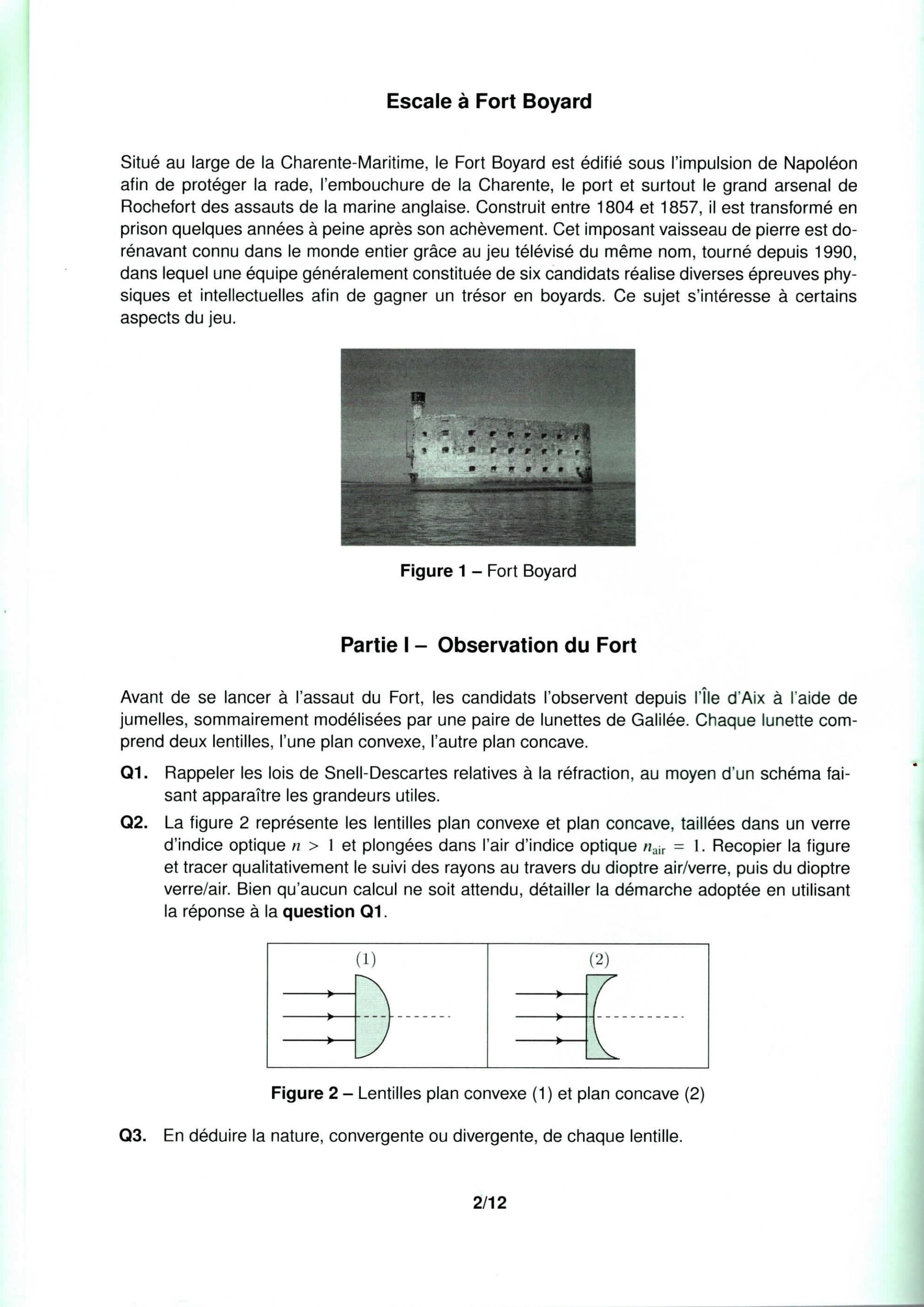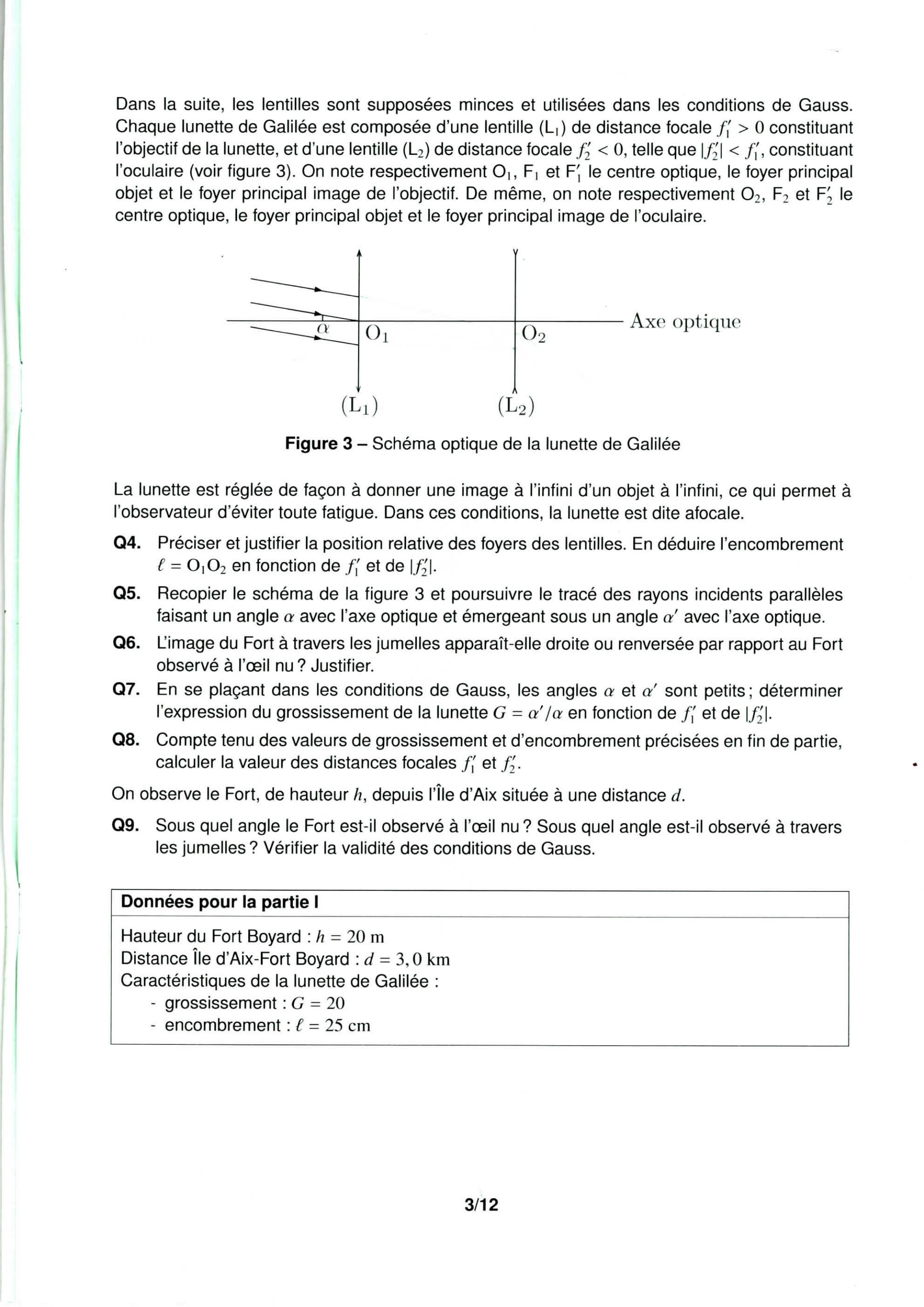 Avant de se lancer à l'assaut du Fort, les candidats l'observent depuis l'île d'Aix à l'aide de jumelles, sommairement modélisées par une paire de lunettes de Galilée. Chaque lunette comprend deux lentilles, l'une plan convexe, l'autre plan concave.