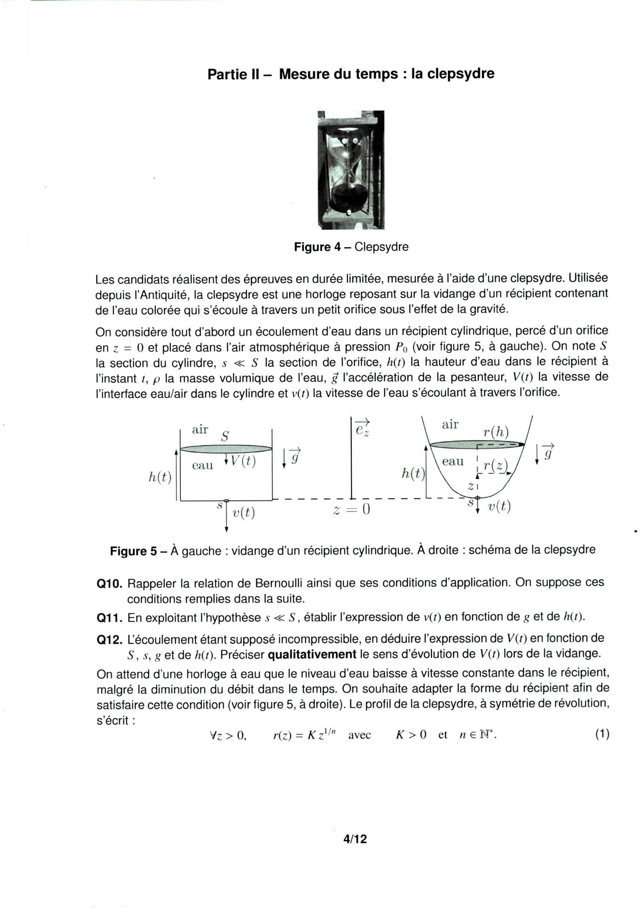 Q12. L'écoulement étant supposé incompressible, en déduire l'expression de en fonction de et de . Préciser qualitativement le sens d'évolution de lors de la vidange.