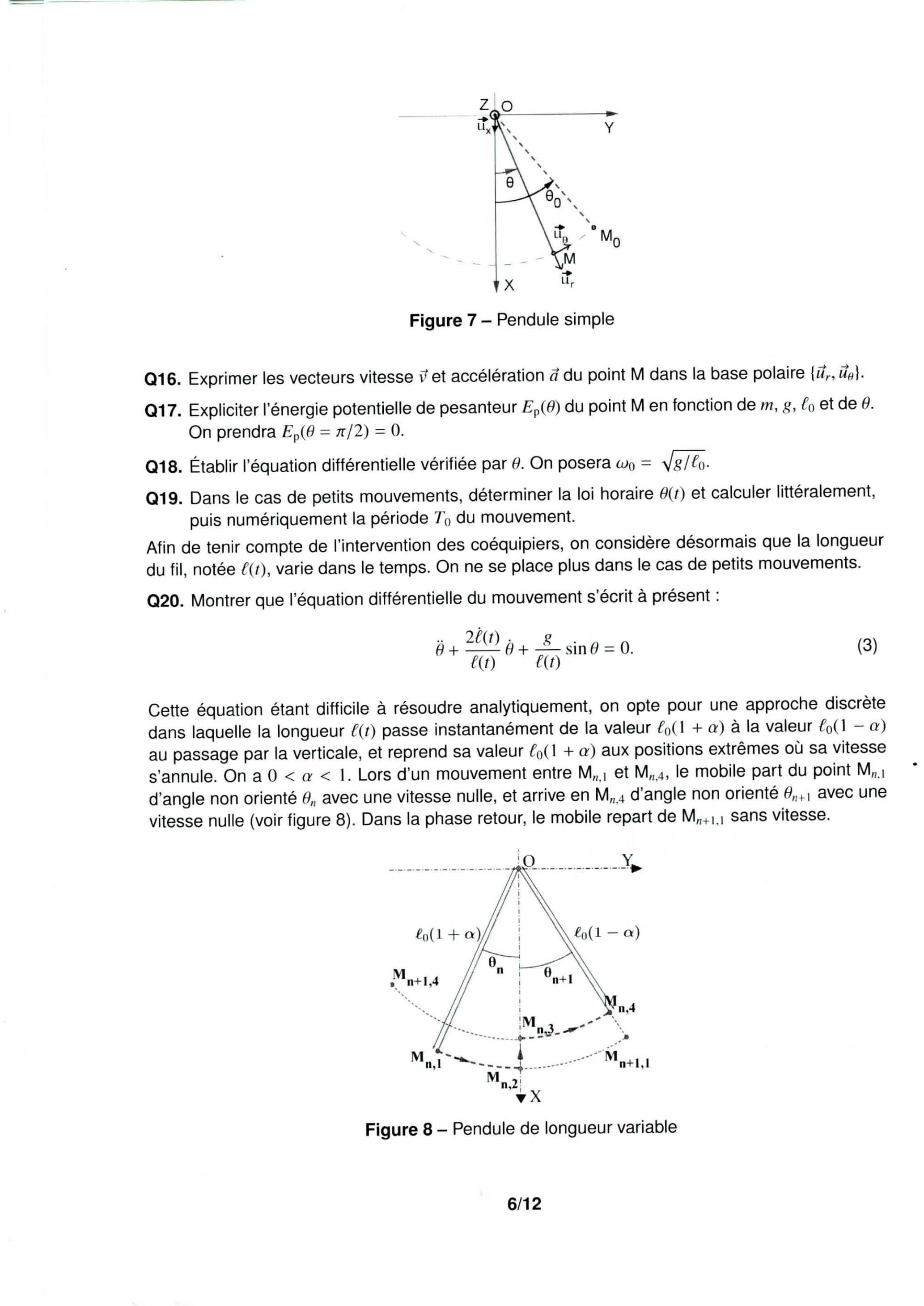 Afin de tenir compte de l'intervention des coéquipiers, on considère désormais que la longueur du fil, notée , varie dans le temps. On ne se place plus dans le cas de petits mouvements.
