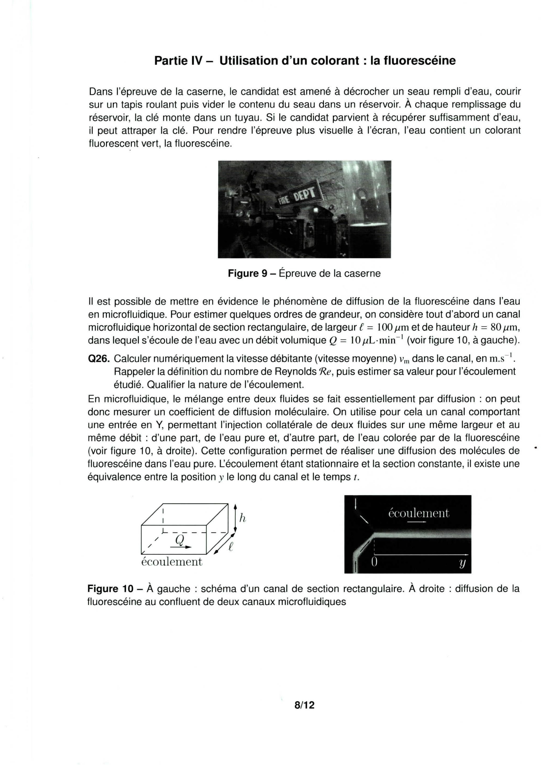Q26. Calculer numériquement la vitesse débitante (vitesse moyenne) dans le canal, en . Rappeler la définition du nombre de Reynolds , puis estimer sa valeur pour l'écoulement étudié. Qualifier la nature de l'écoulement.
