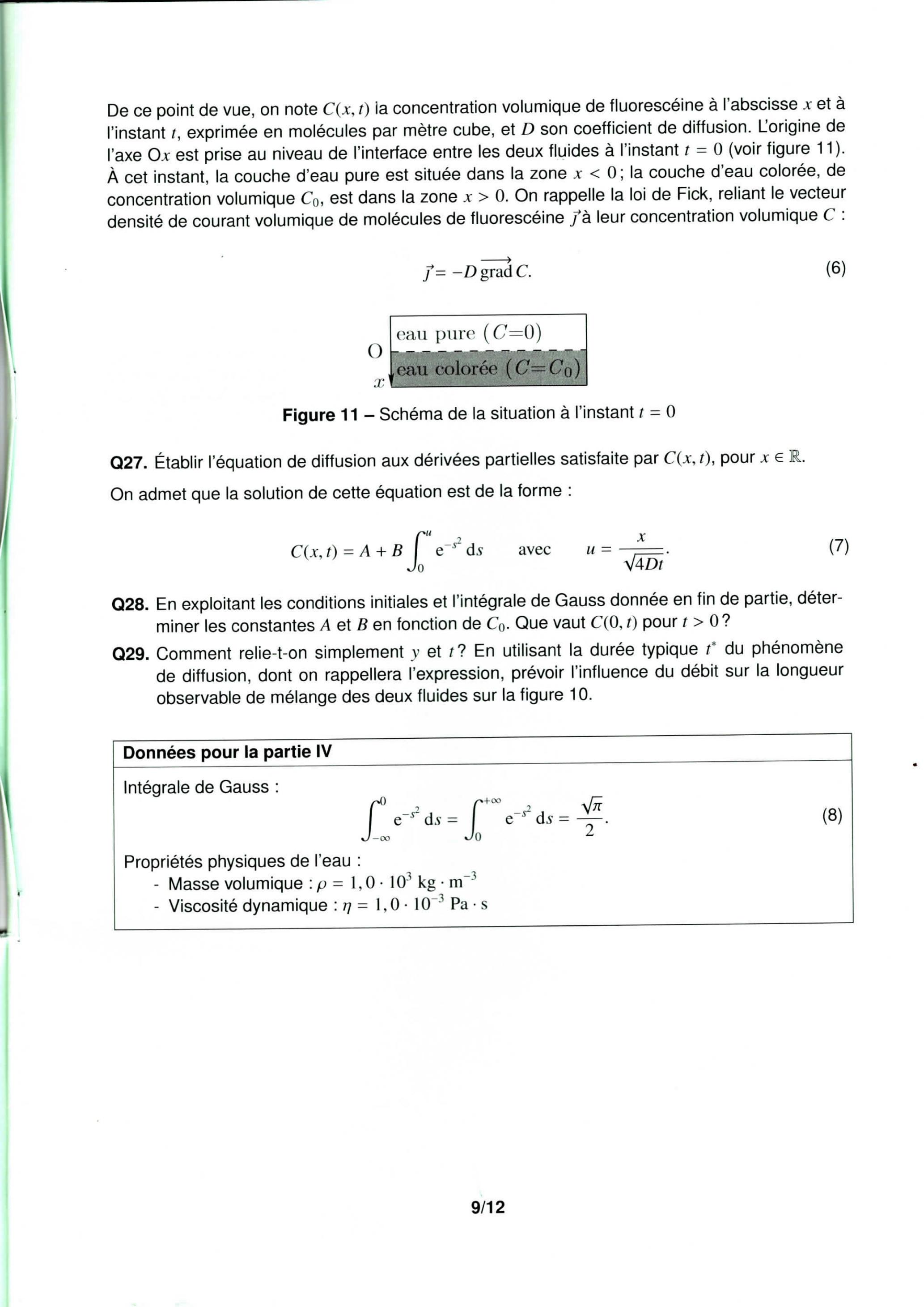Q27. Établir l'équation de diffusion aux dérivées partielles satisfaite par , pour .