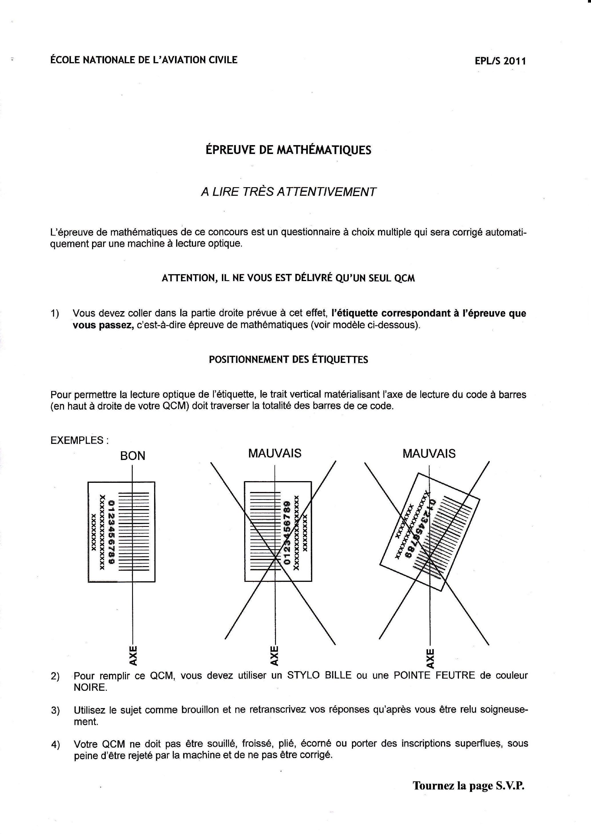 ENAC Mathématiques Sup 2011 - Version Web LaTeX | WikiPrépa | WikiPrépa