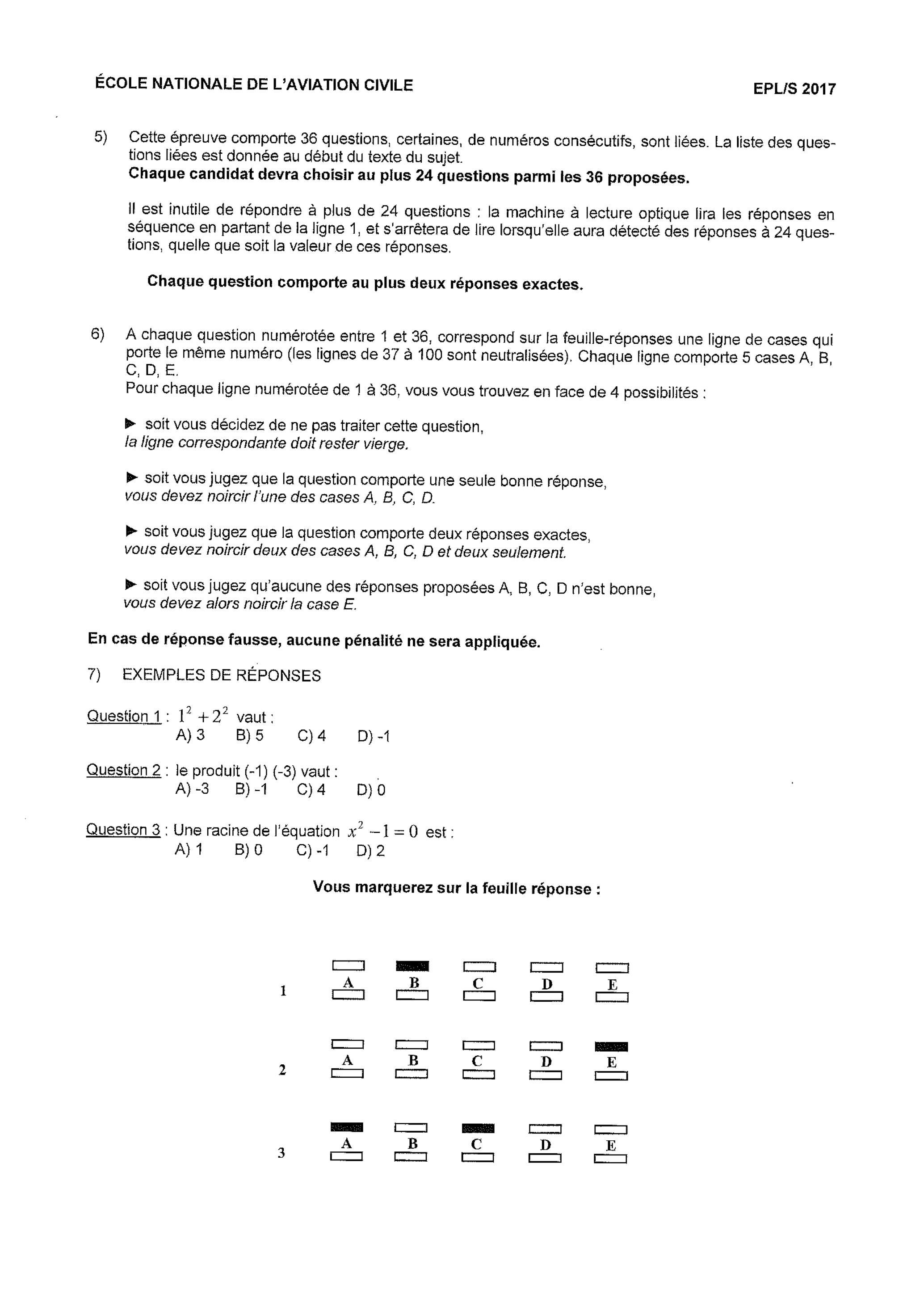 L'épreuve de mathématiques de ce concours est un questionnaire à choix multiple qui sera corrigé automatiquement par une machine à lecture optique.