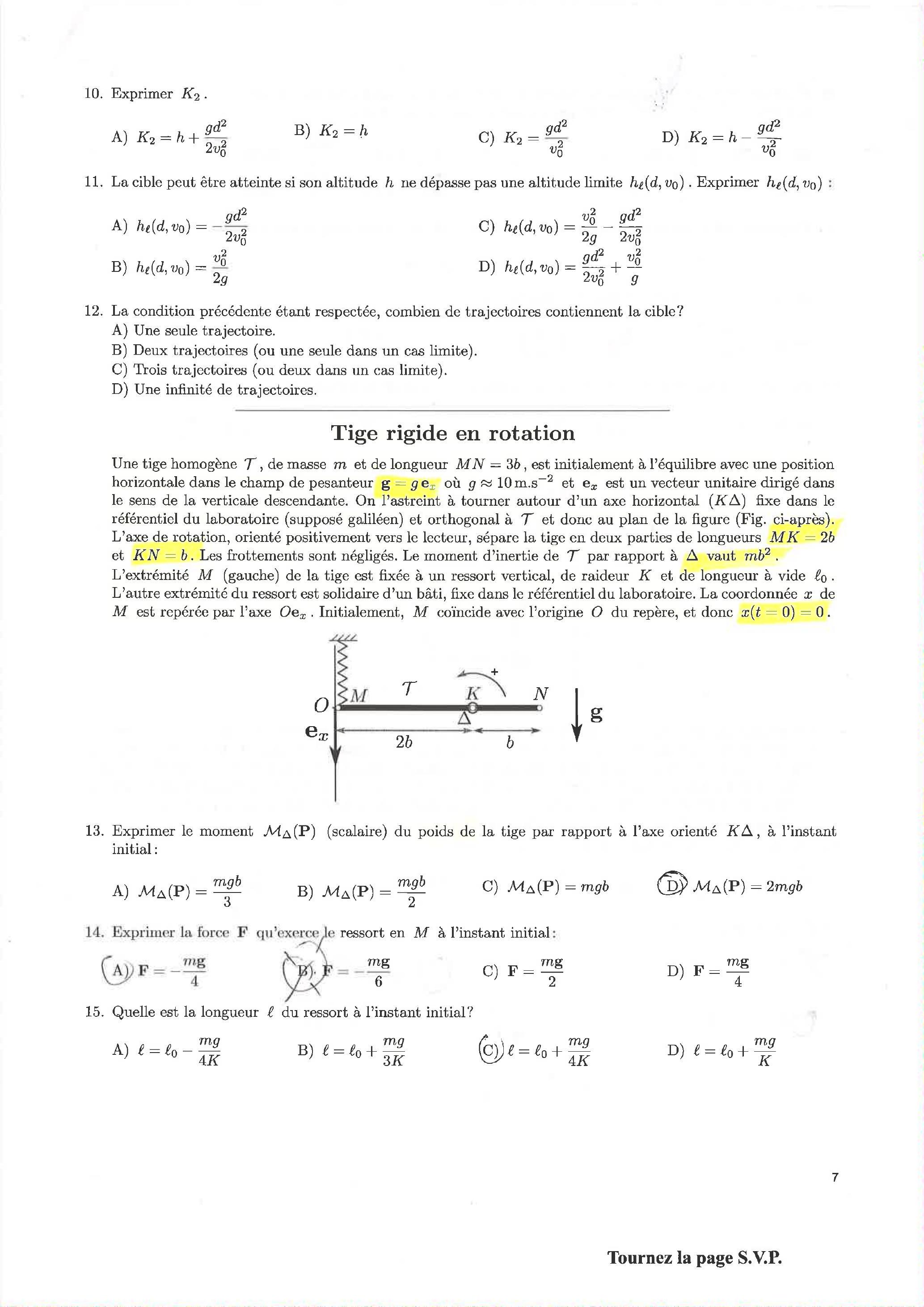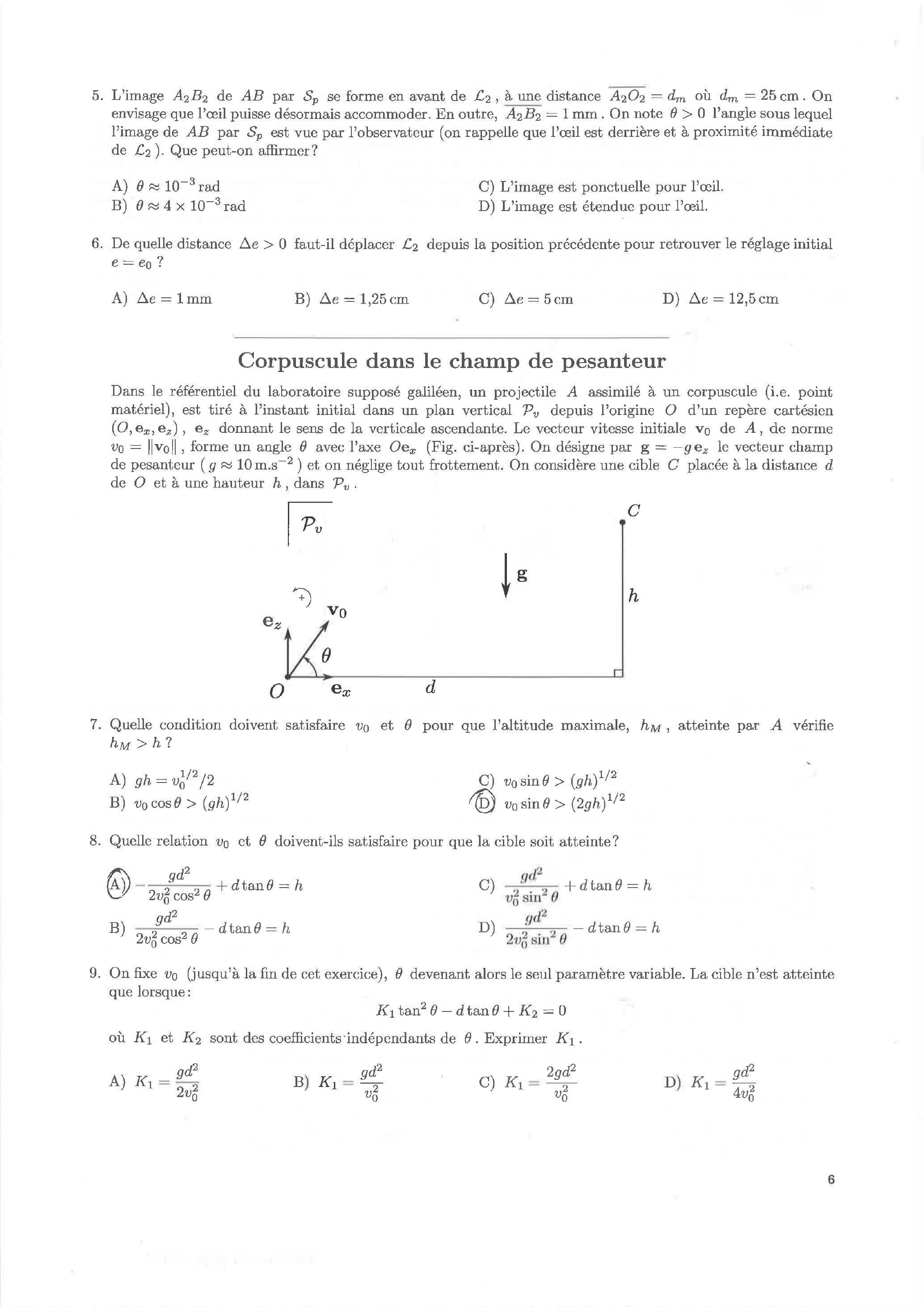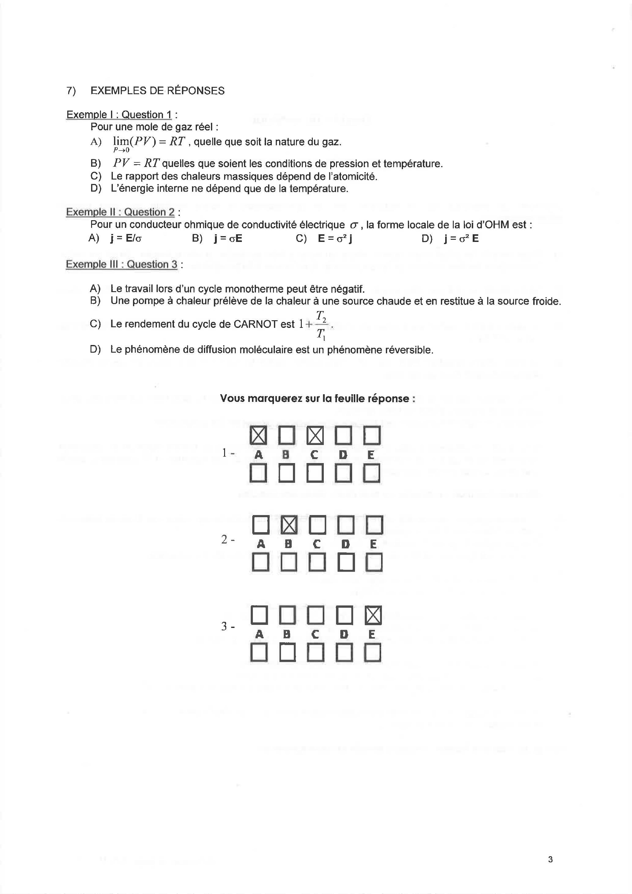 L'épreuve de physique de ce concours est un questionnaire à choix multiple qui sera corrigé informatiquement.
