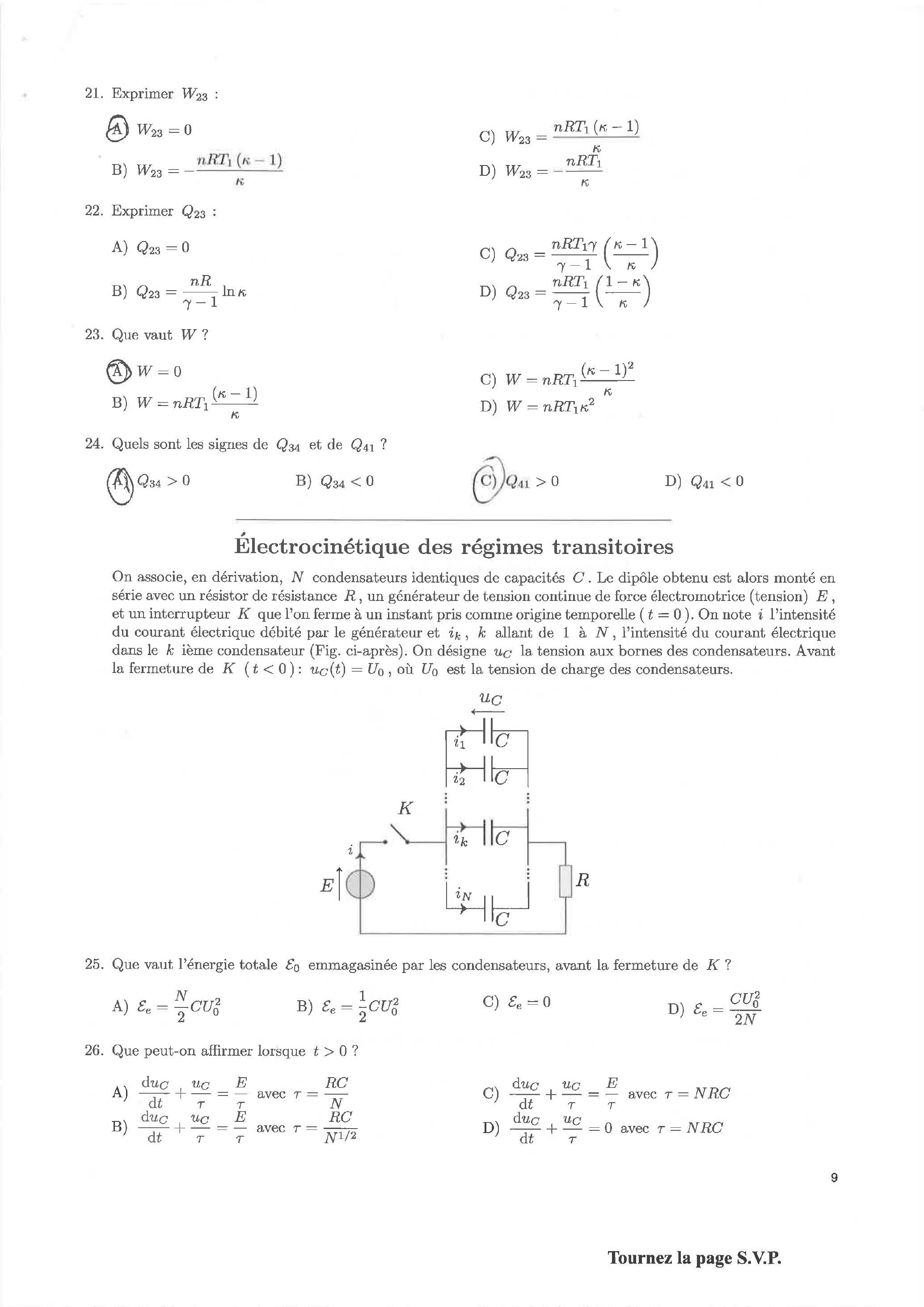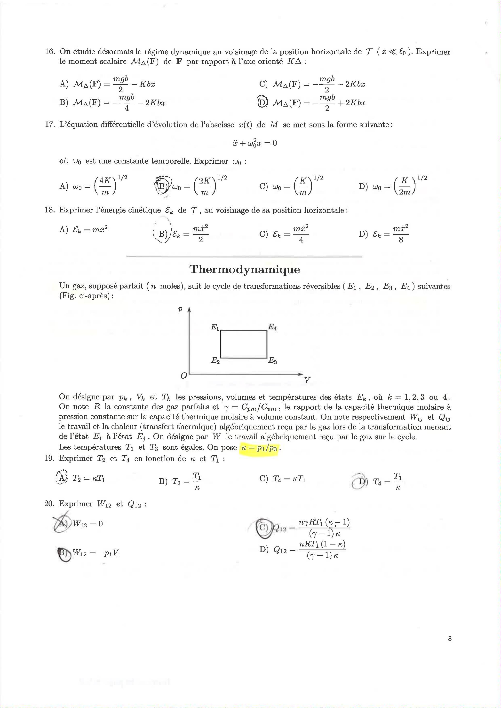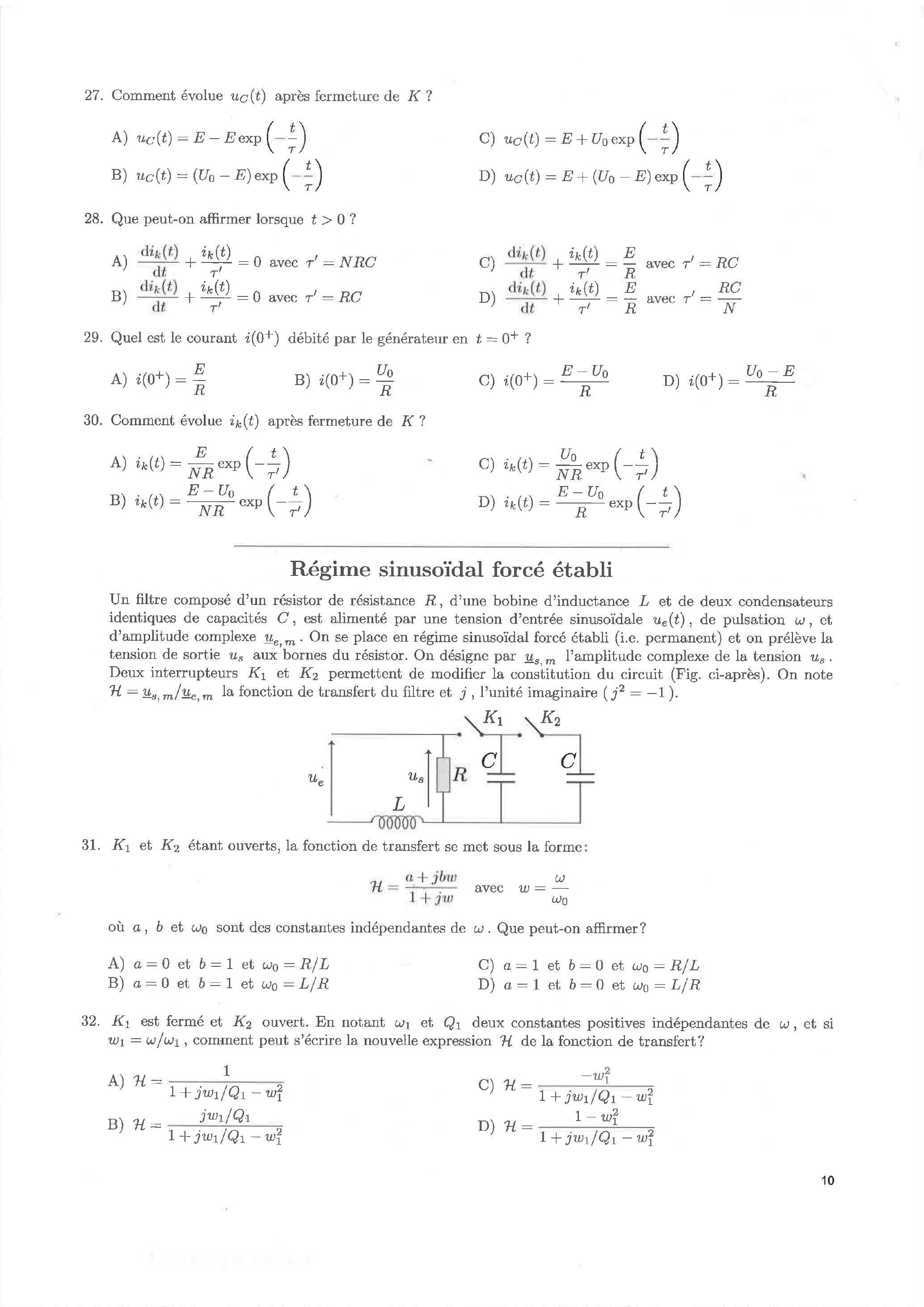 L'épreuve de physique de ce concours est un questionnaire à choix multiple qui sera corrigé informatiquement.