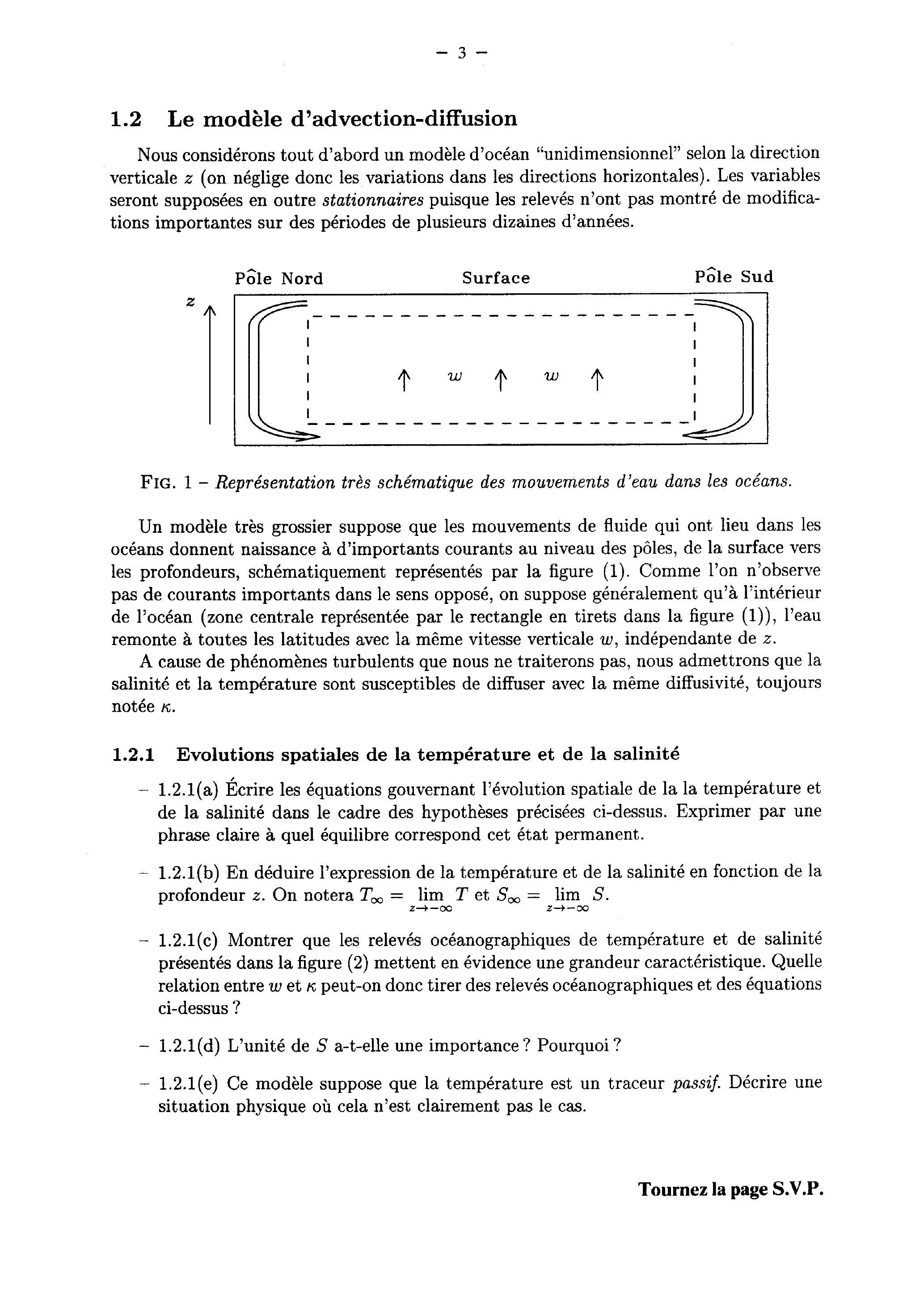 1.2.2(c) Les relevés océanographiques permettent d'obtenir une estimation de cette constante, . En déduire un ordre de grandeur de la vitesse verticale et de la diffusivité .