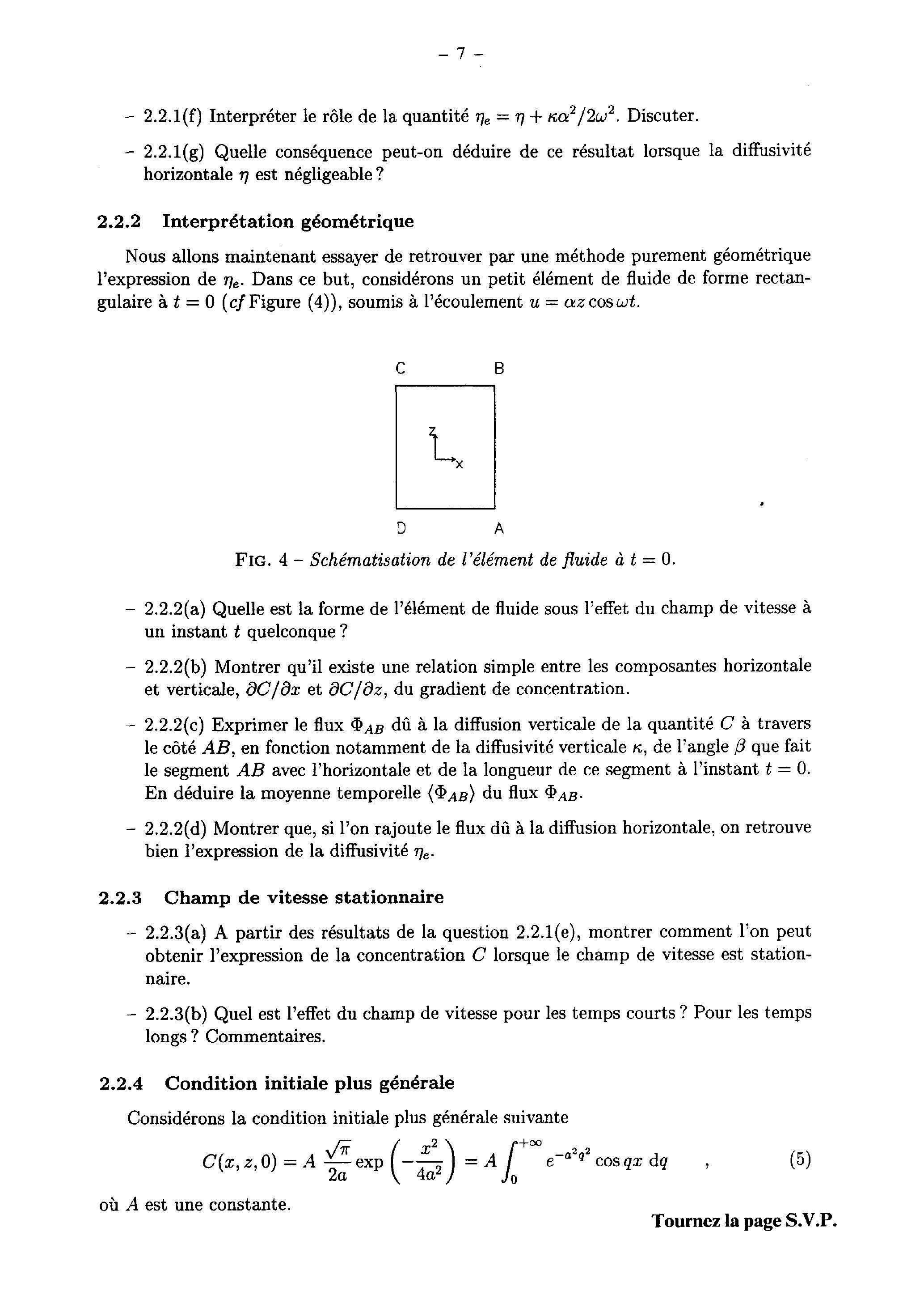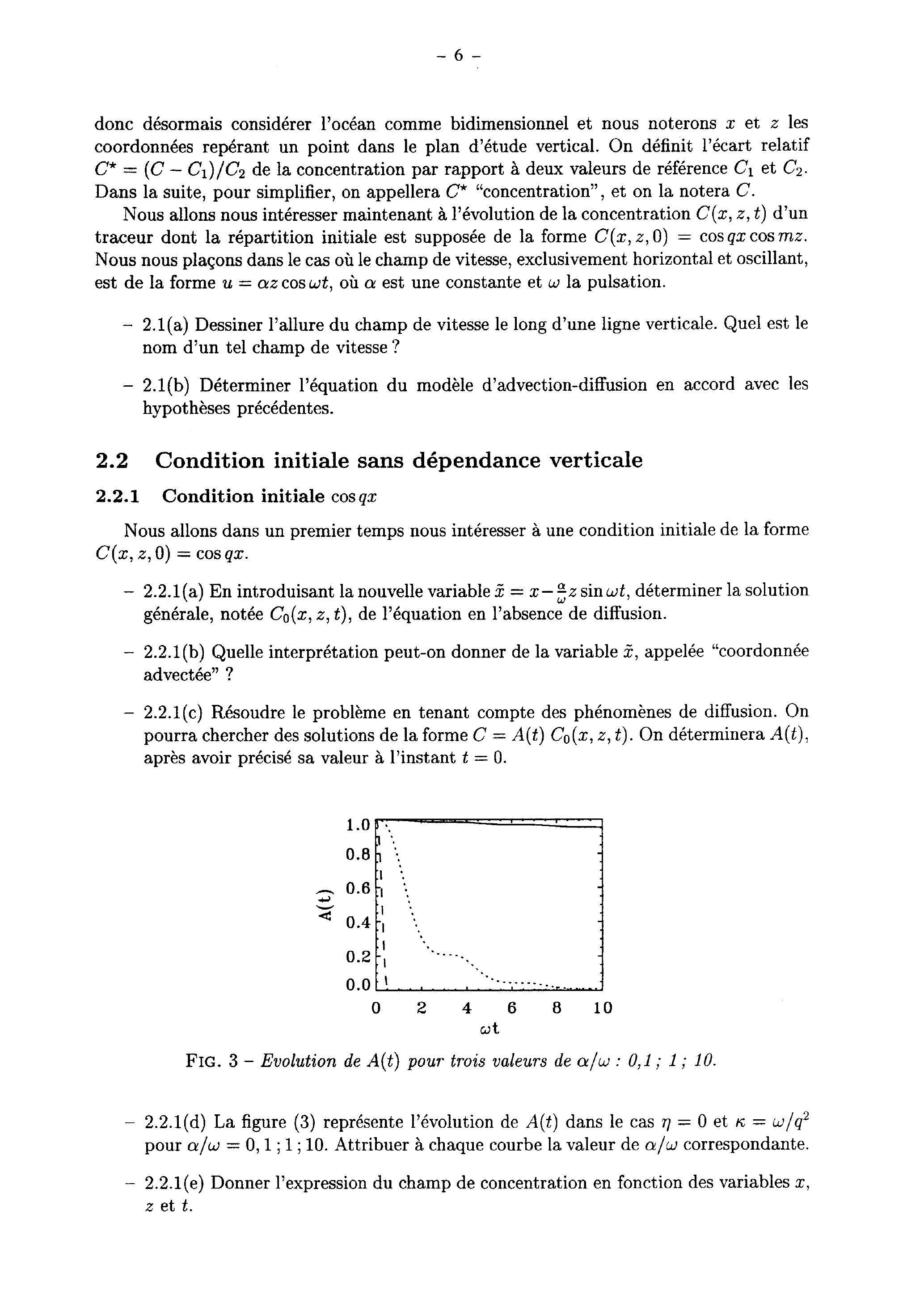 2.2.1(c) Résoudre le problème en tenant compte des phénomènes de diffusion. On pourra chercher des solutions de la forme . On déterminera , après avoir précisé sa valeur à l'instant .