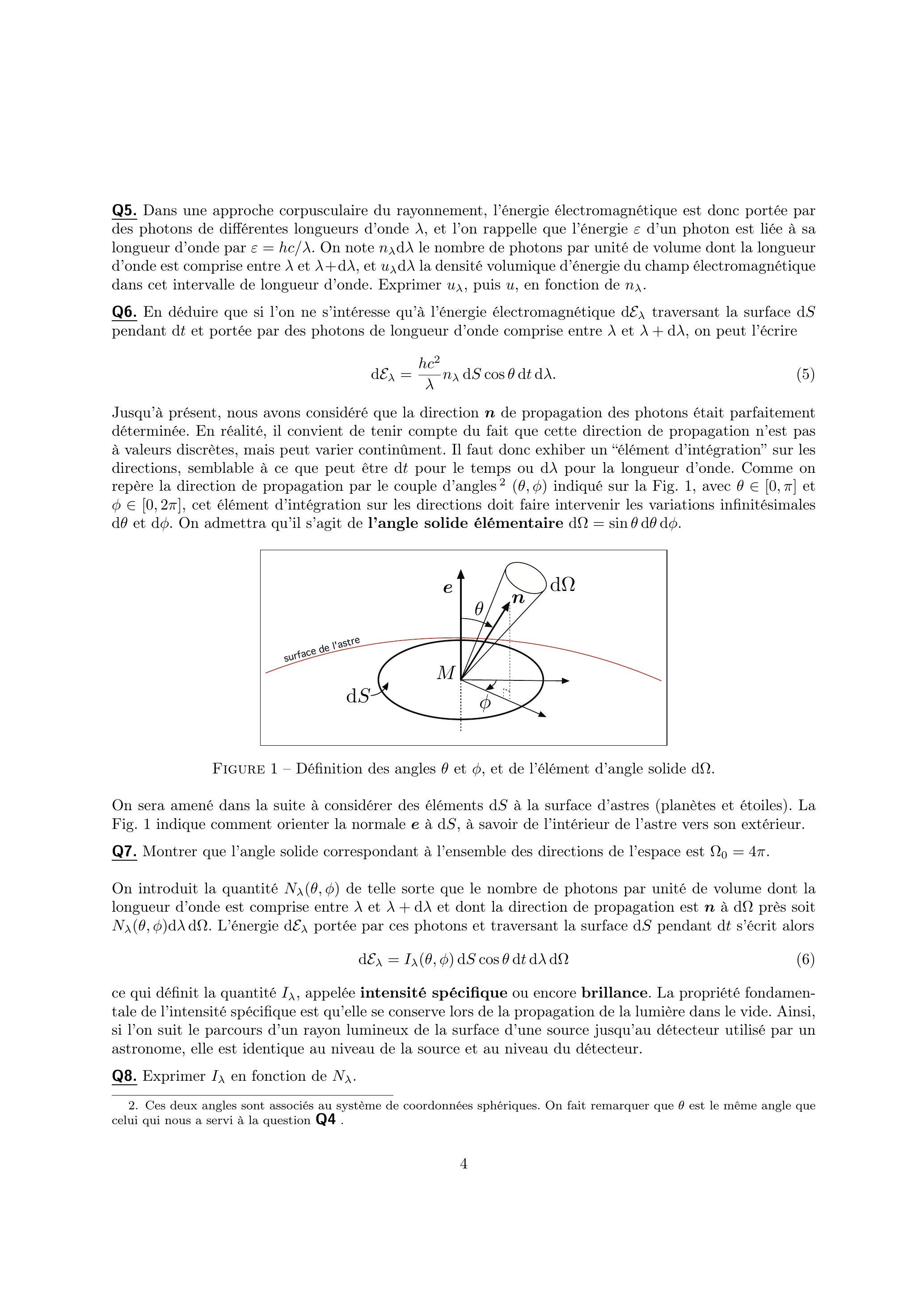 Q57. Montrer que la puissance spectrale peut se mettre sous une forme faisant intervenir la surface apparente du disque stellaire