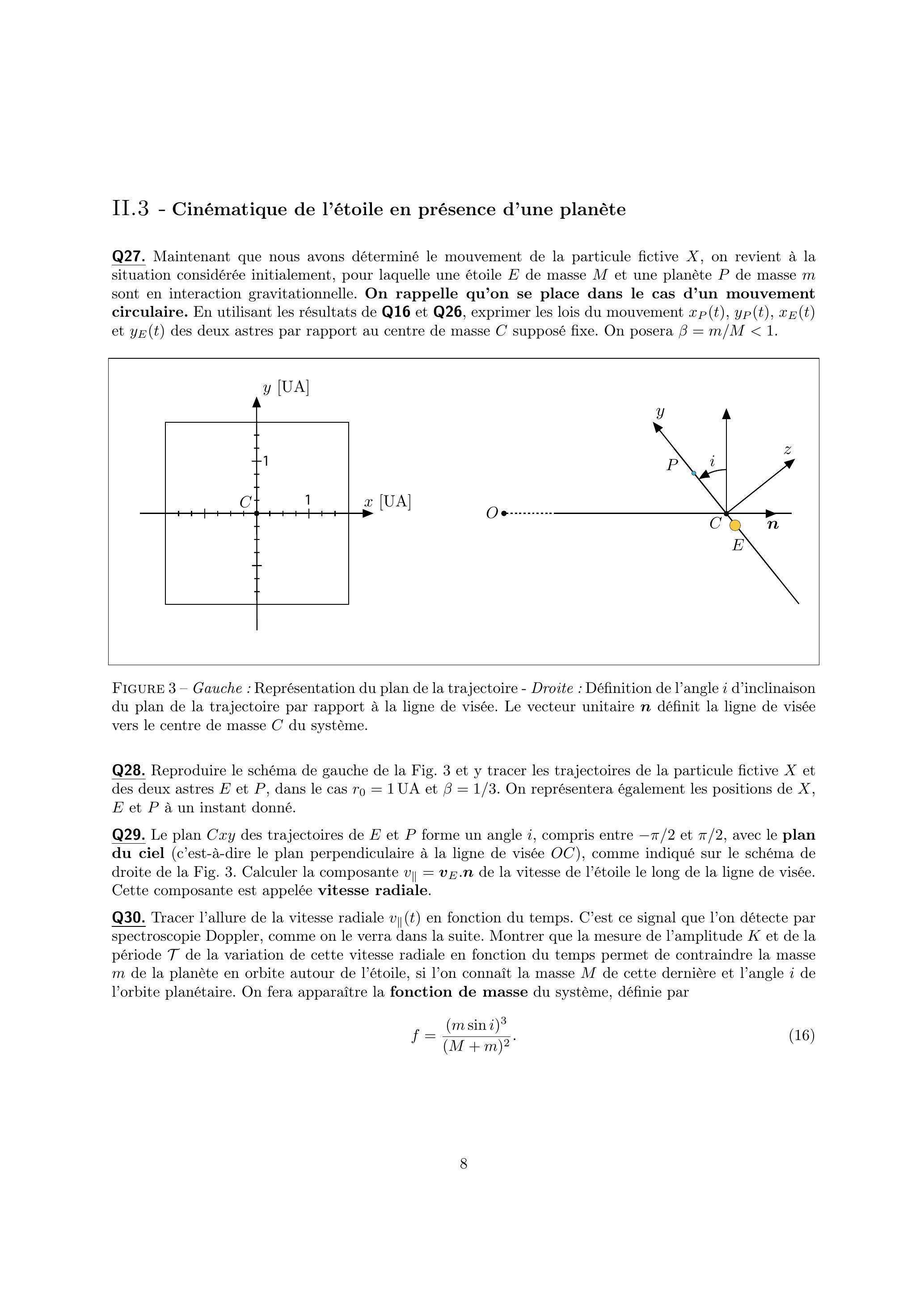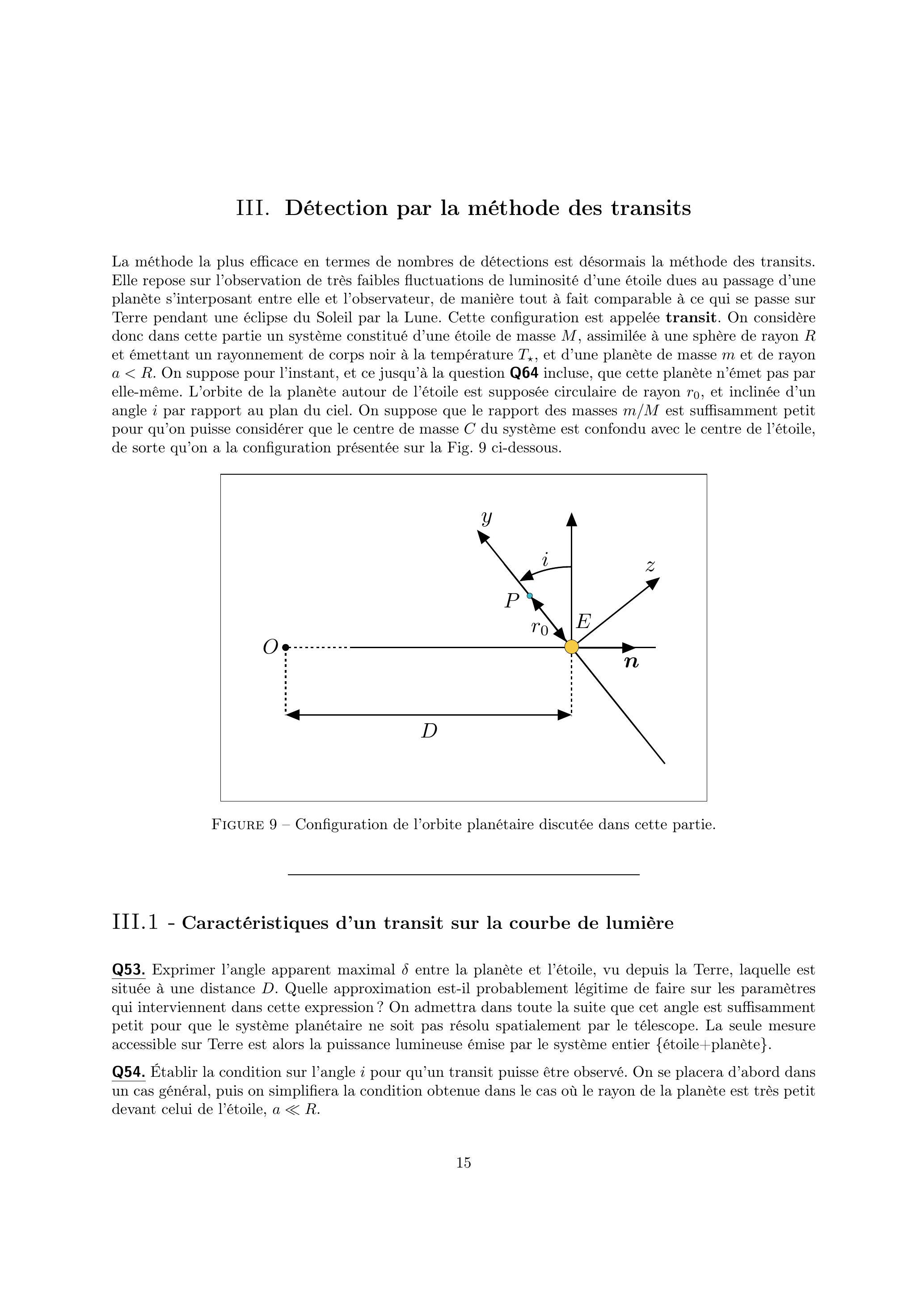 . On suppose pour l'instant, et ce jusqu'à la question Q64 incluse, que cette planète n'émet pas par elle-même. L'orbite de la planète autour de l'étoile est supposée circulaire de rayon