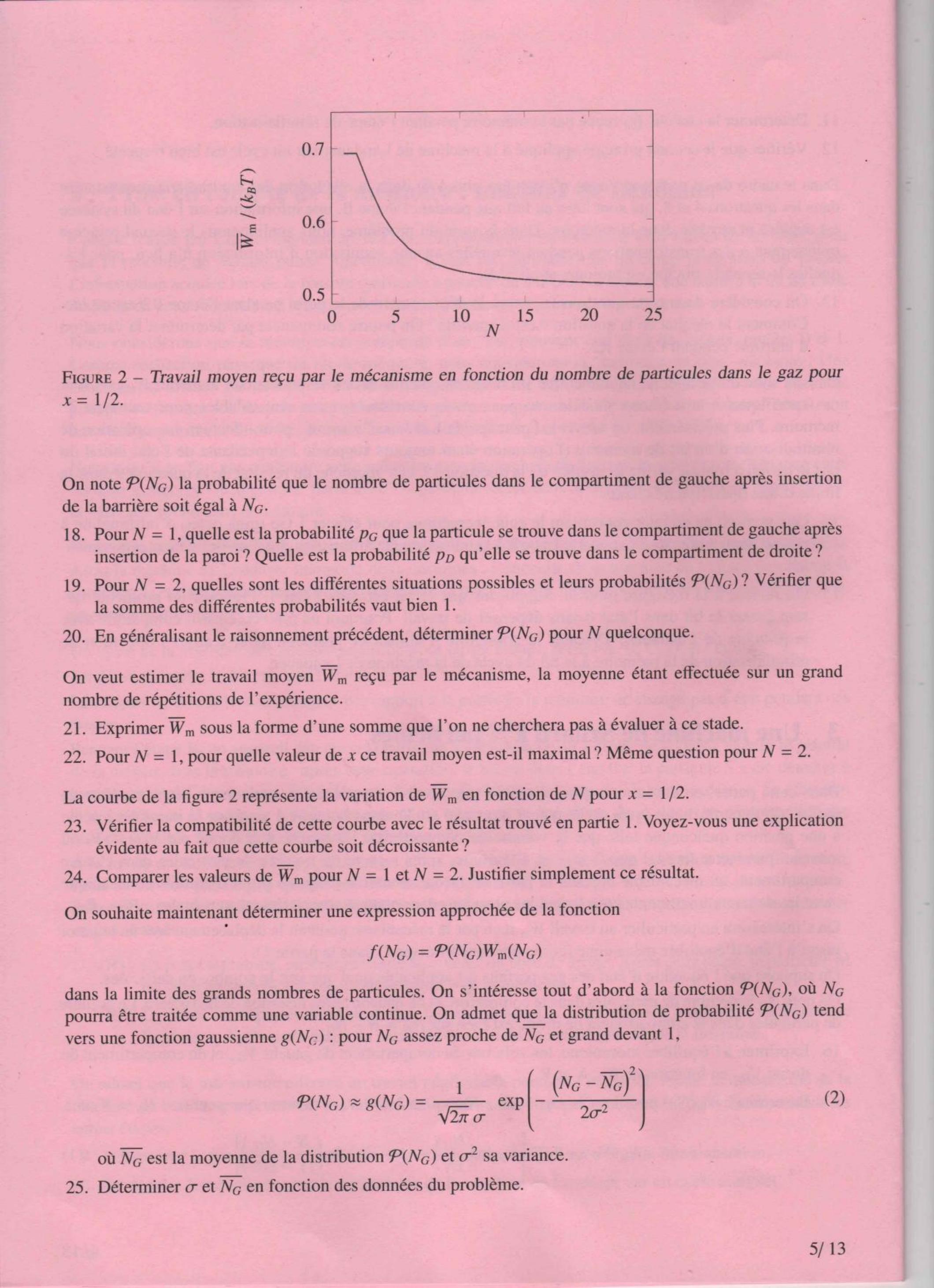 On note le nombre de particules dans le compartiment de gauche après insertion de la barrière. Le nombre de particules dans le compartiment de droite est bien sûr .