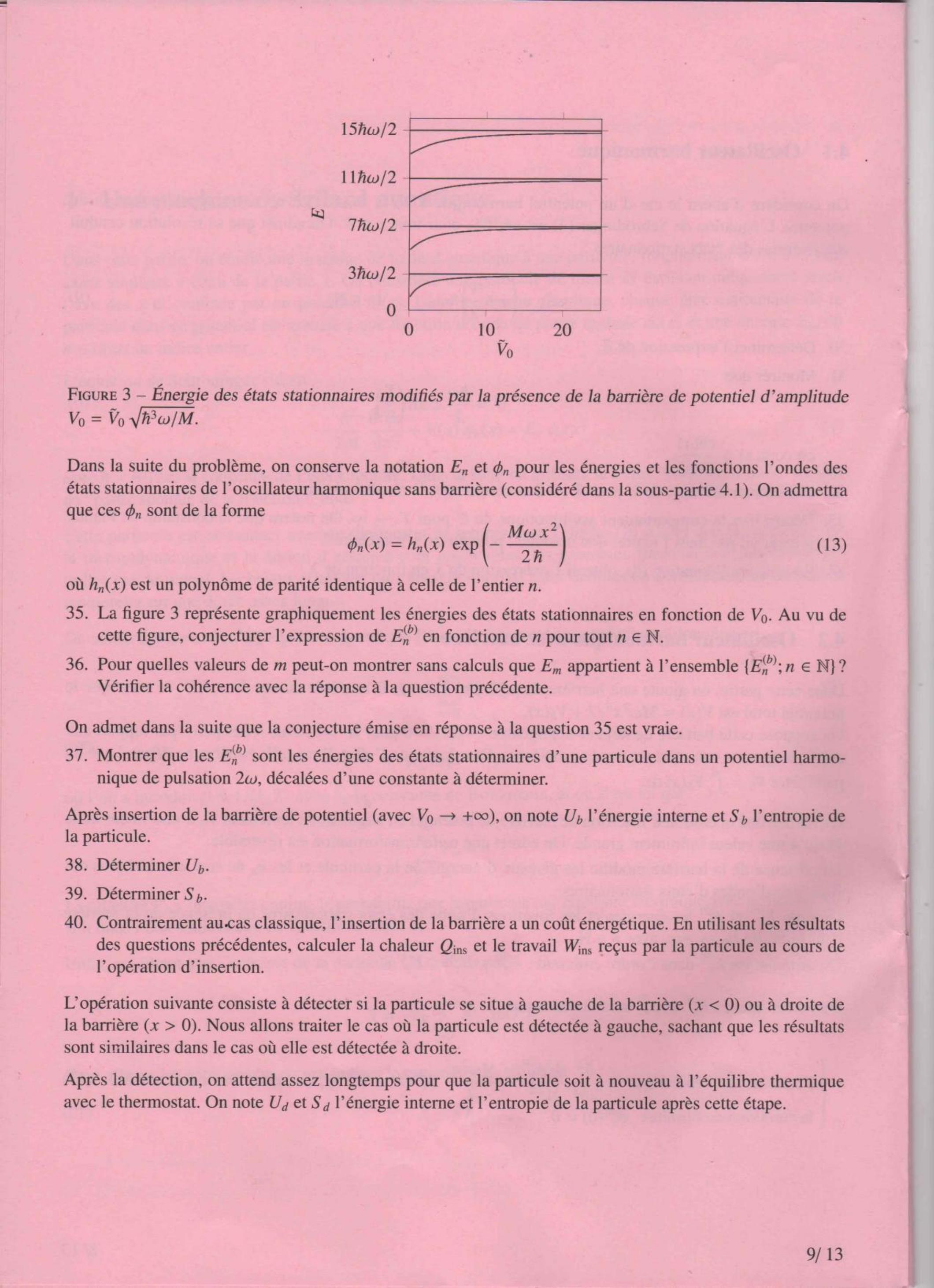 40. Contrairement au.cas classique, l'insertion de la barrière a un coût énergétique. En utilisant les résultats des questions précédentes, calculer la chaleur et le travail reçus par la particule au cours de l'opération d'insertion.