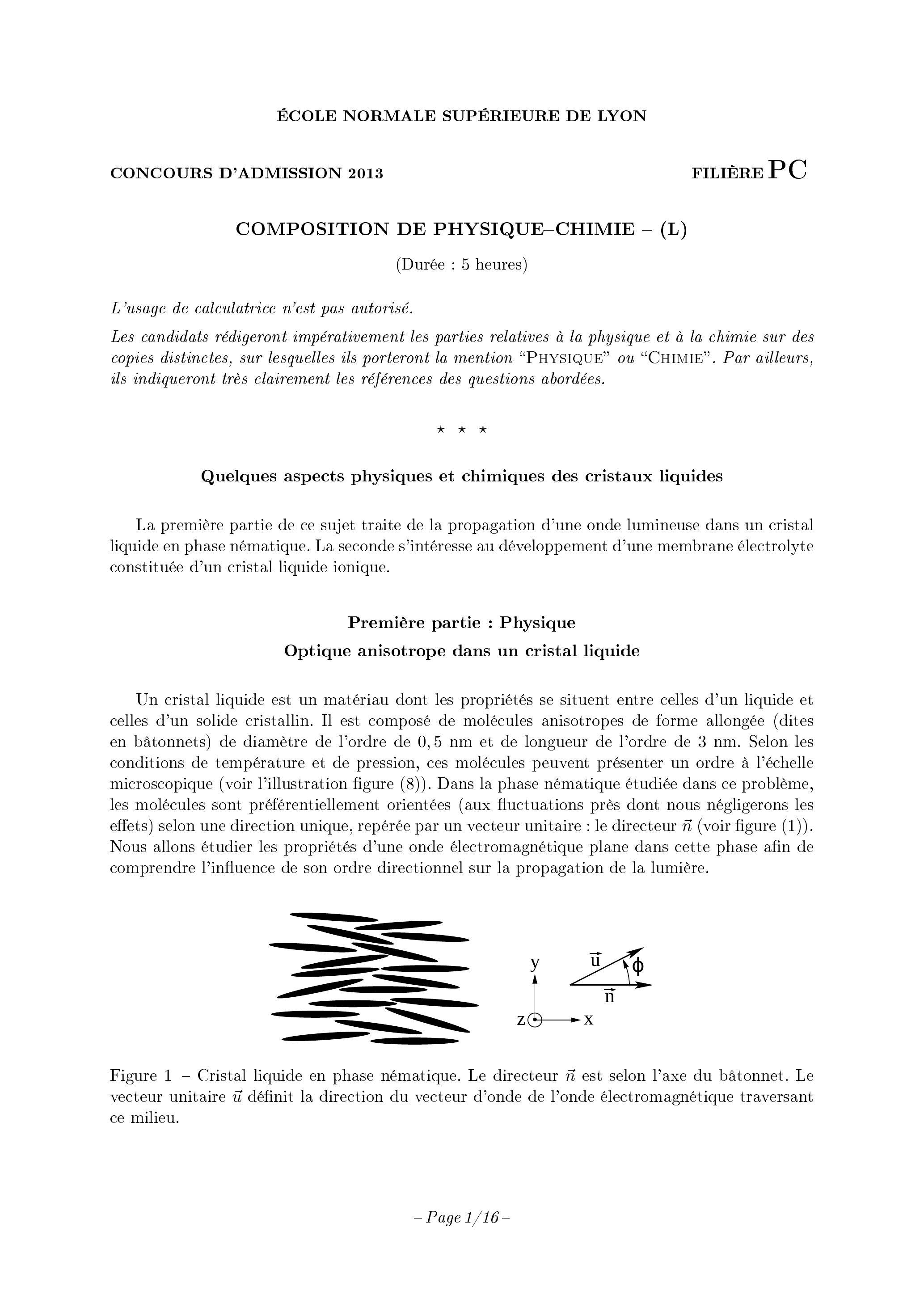 ENS Physique Chimie L PC 2013 - Version Web LaTeX | WikiPrépa | WikiPrépa