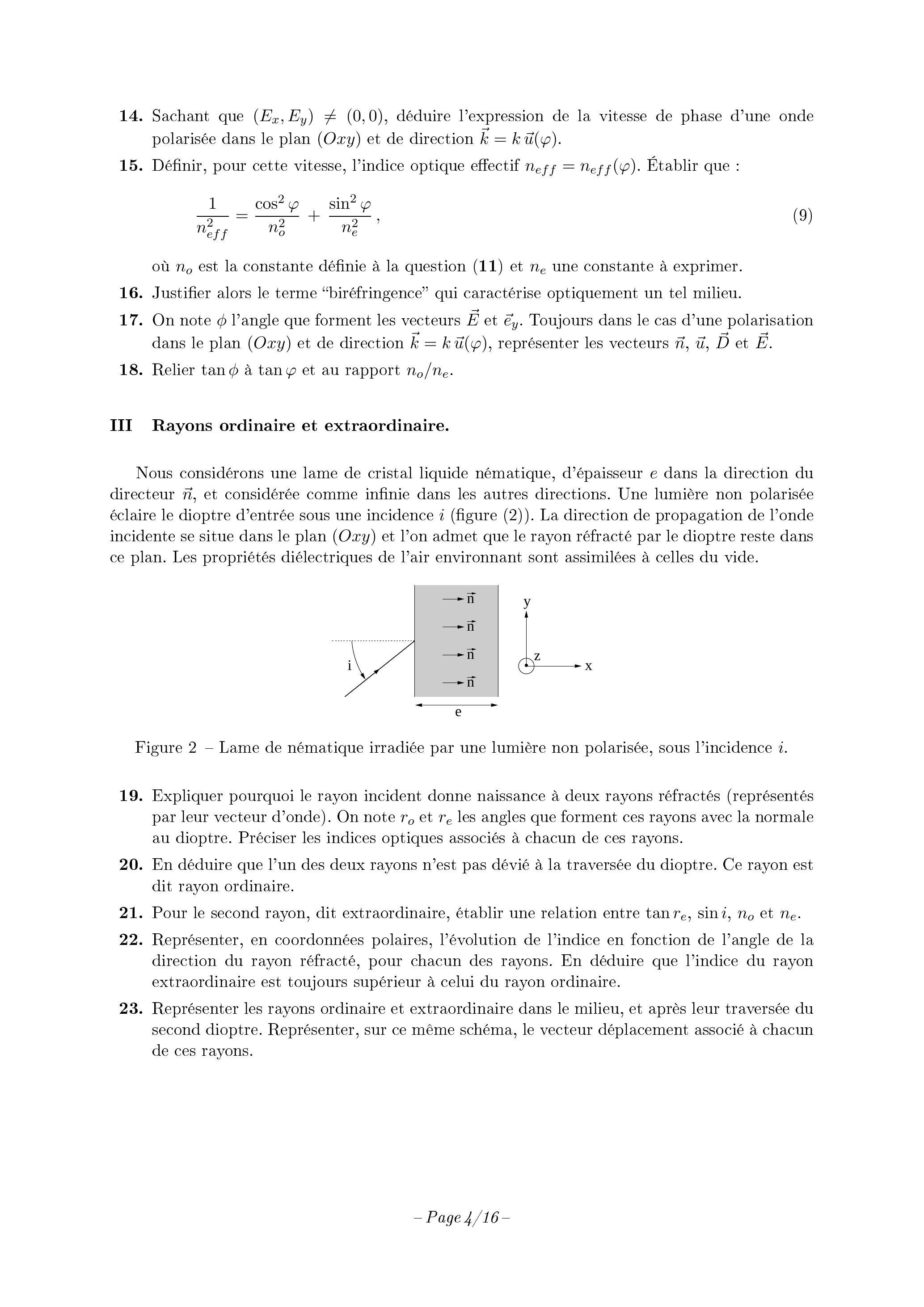 16. Justifier alors le terme "biréfringence" qui caractérise optiquement un tel milieu.