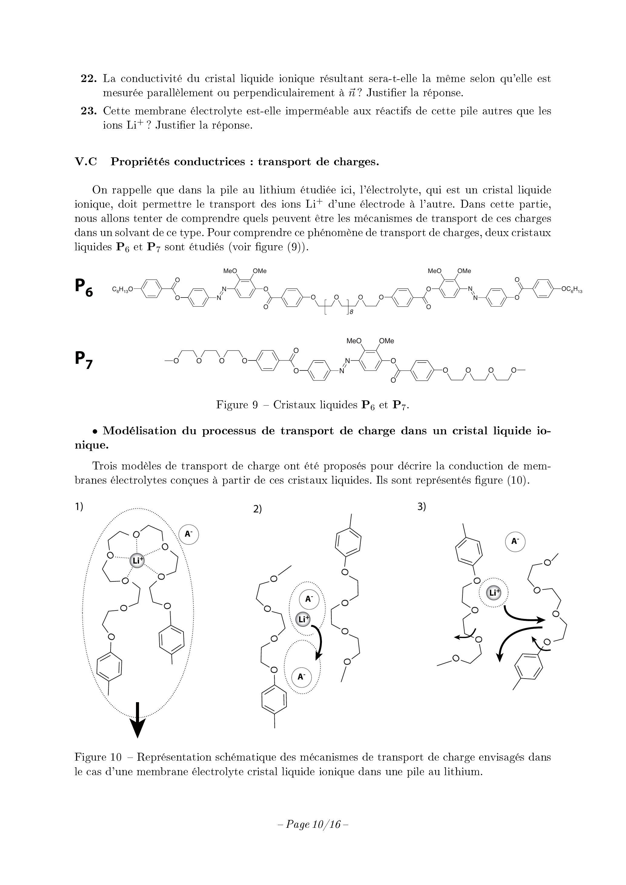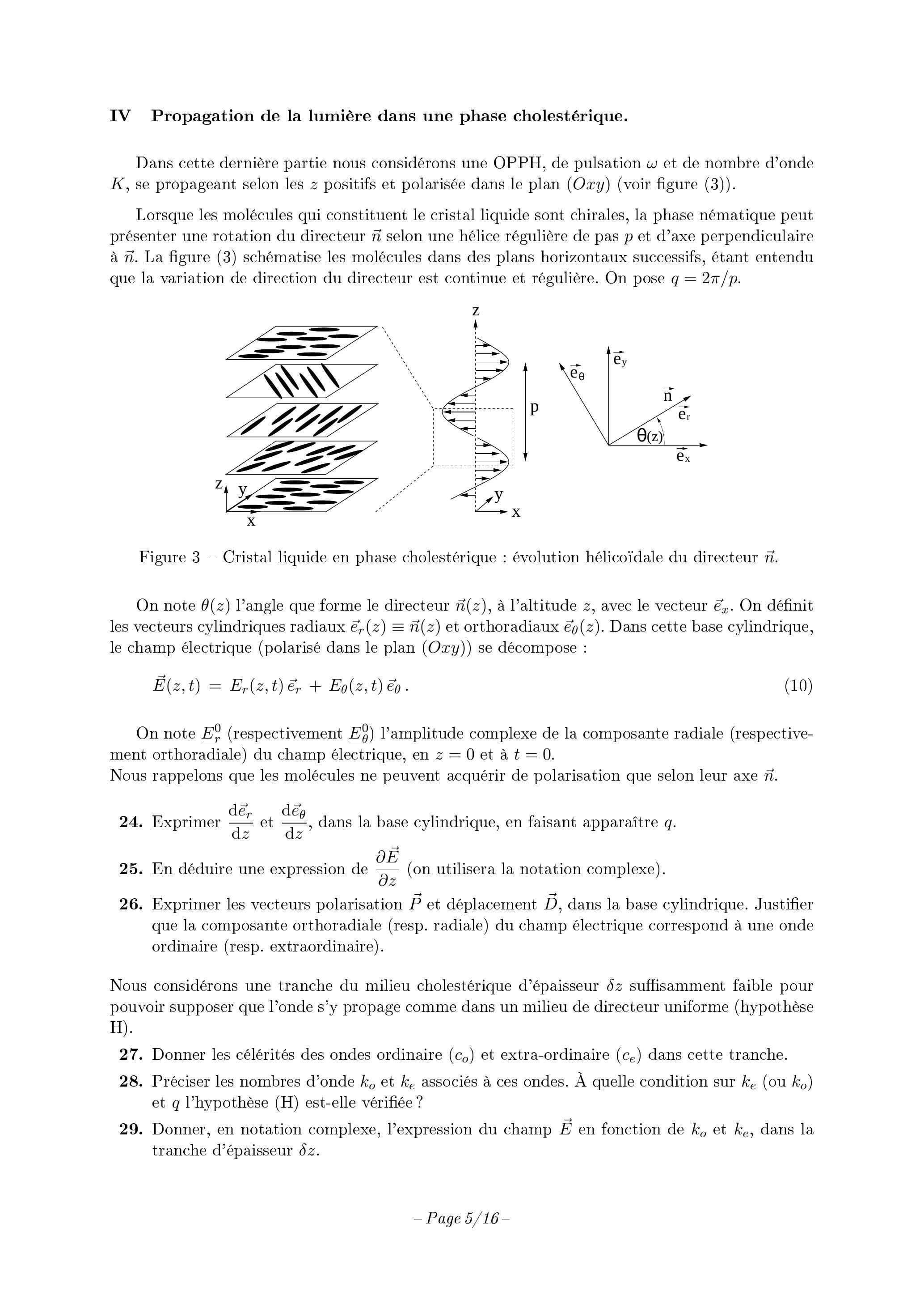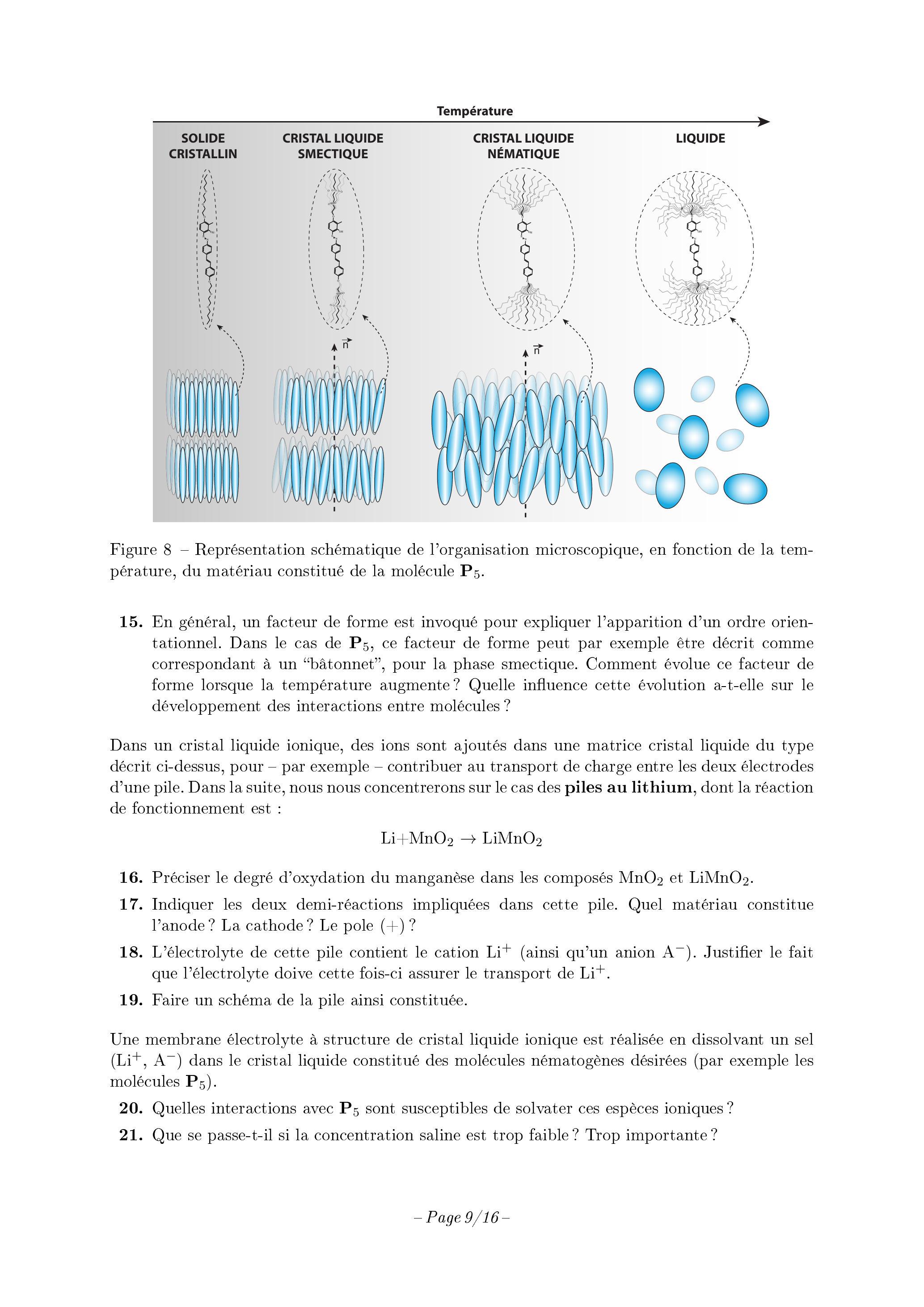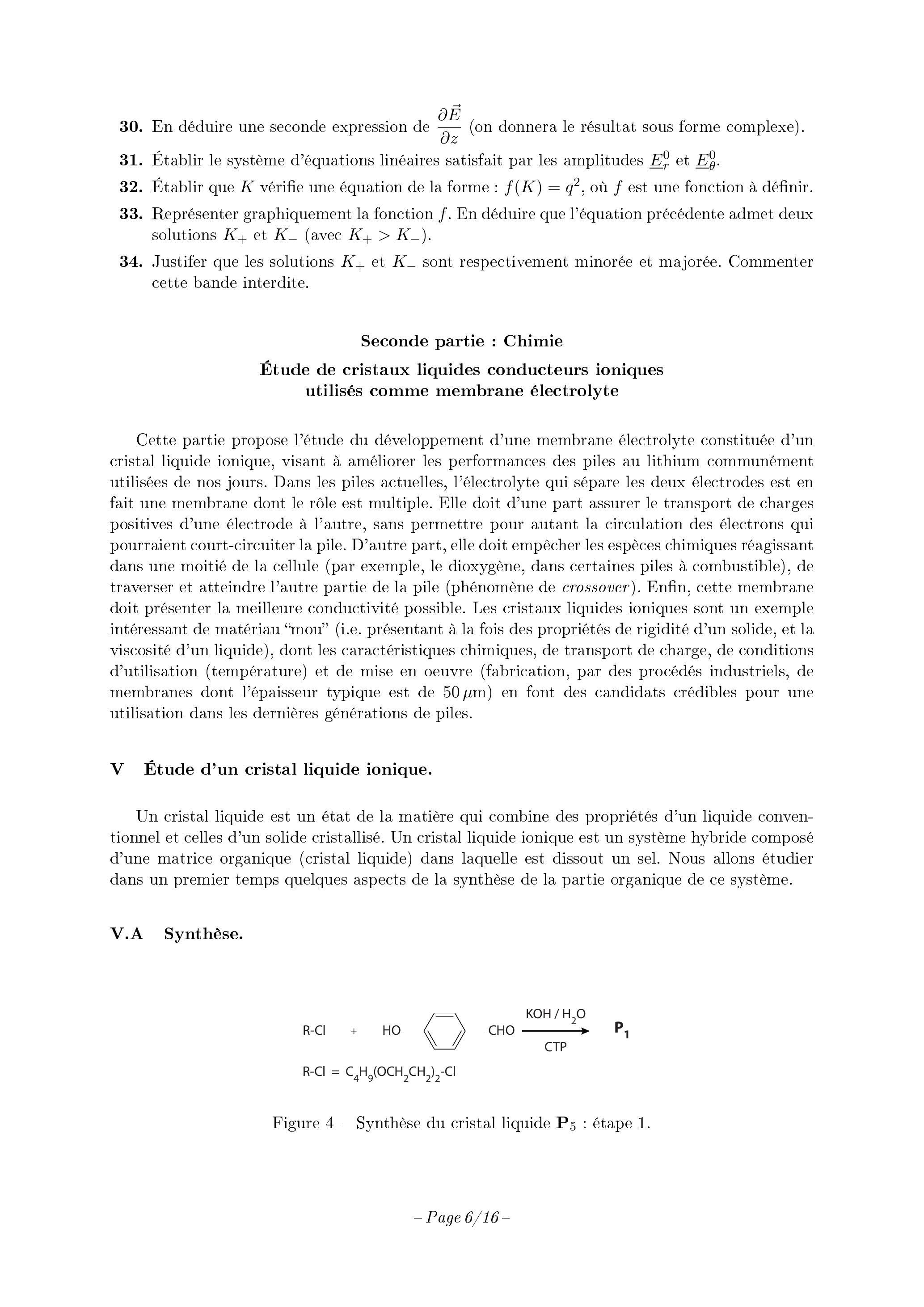 La première partie de ce sujet traite de la propagation d'une onde lumineuse dans un cristal liquide en phase nématique. La seconde s'intéresse au développement d'une membrane électrolyte constituée d'un cristal liquide ionique.