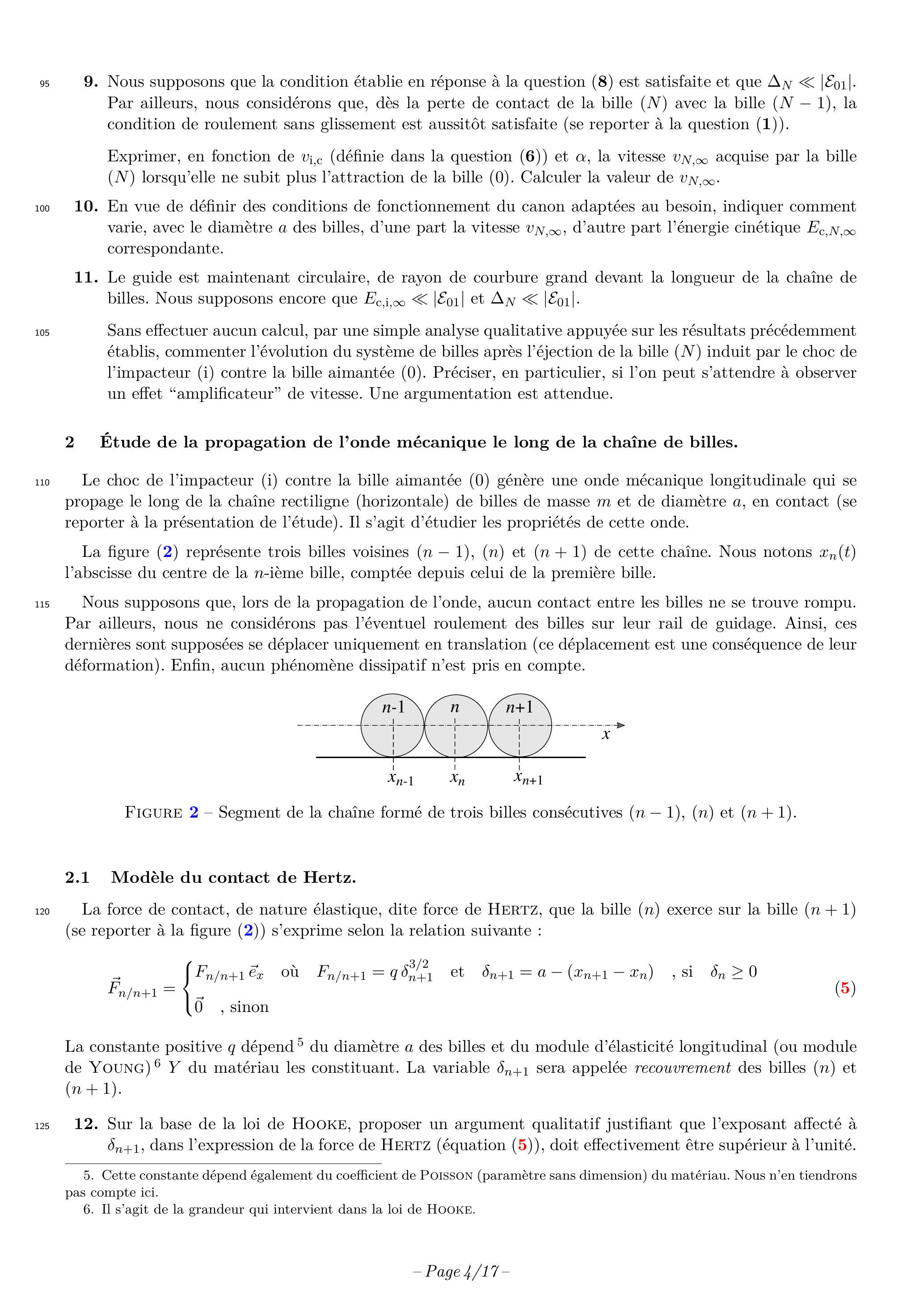 18. Établir que le comportement dynamique de la chaîne de billes est alors décrit par l'équation suivante (nous supposons que l'indice ne désigne ni la première bille, ni de la dernière) :