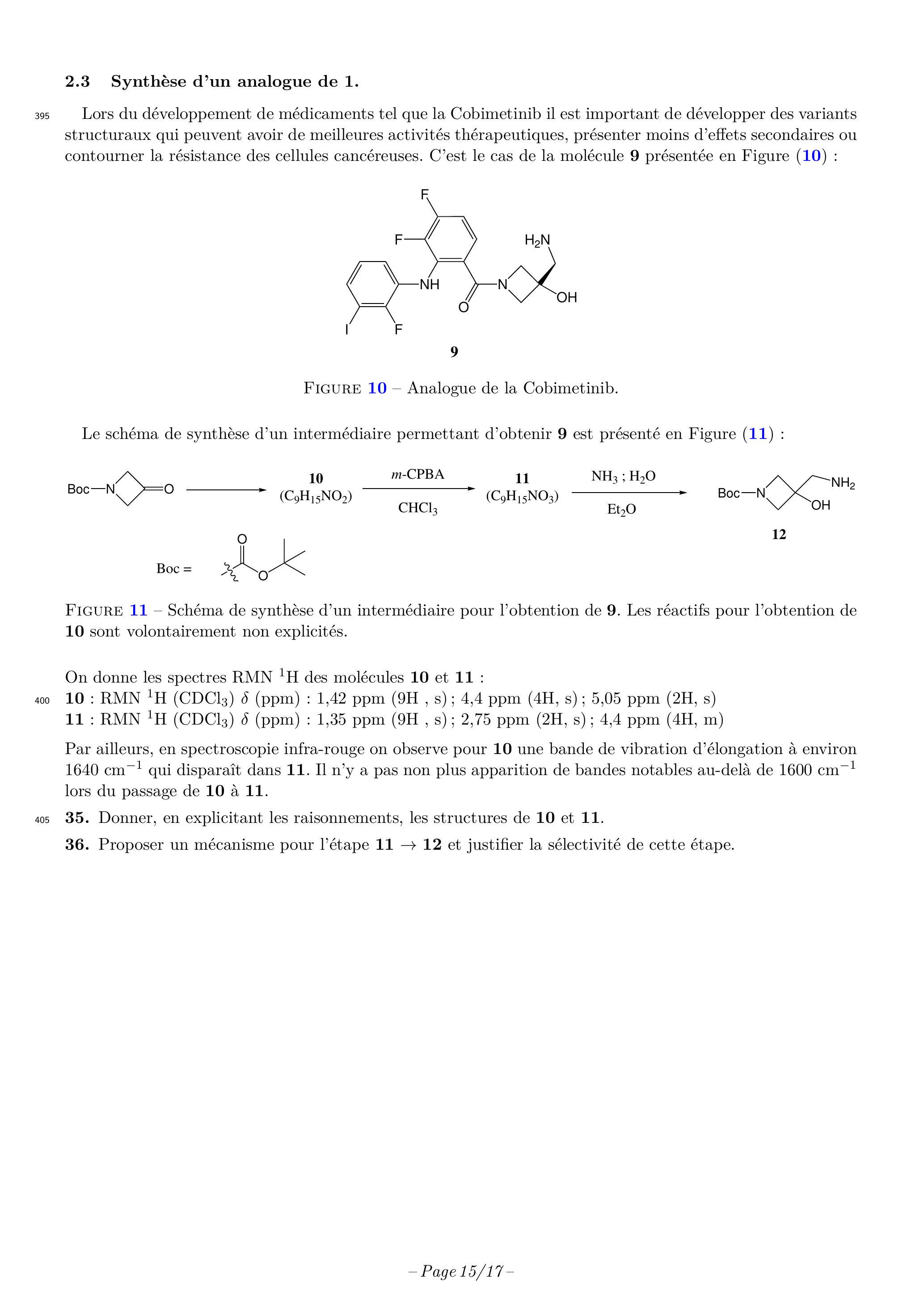 Par ailleurs, en spectroscopie infra-rouge on observe pour 10 une bande de vibration d'élongation à environ qui disparaît dans 11. Il n'y a pas non plus apparition de bandes notables au-delà de lors du passage de 10 à 11 .